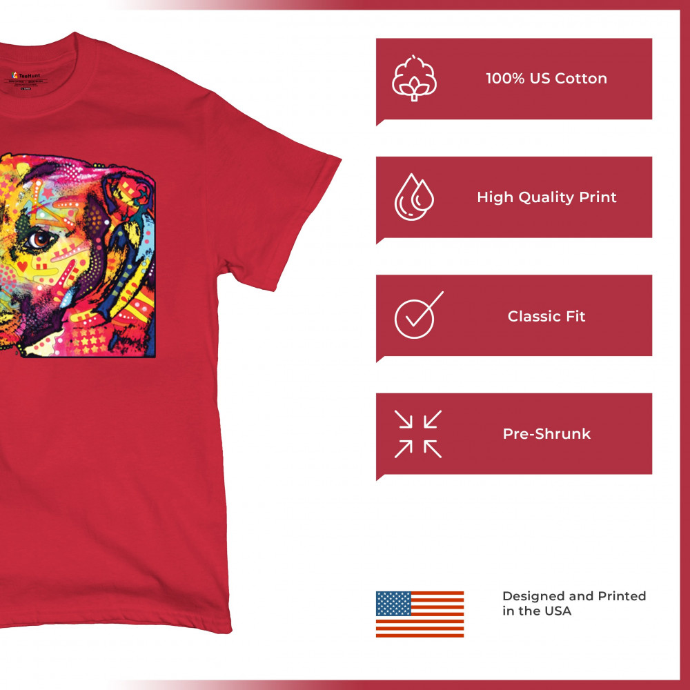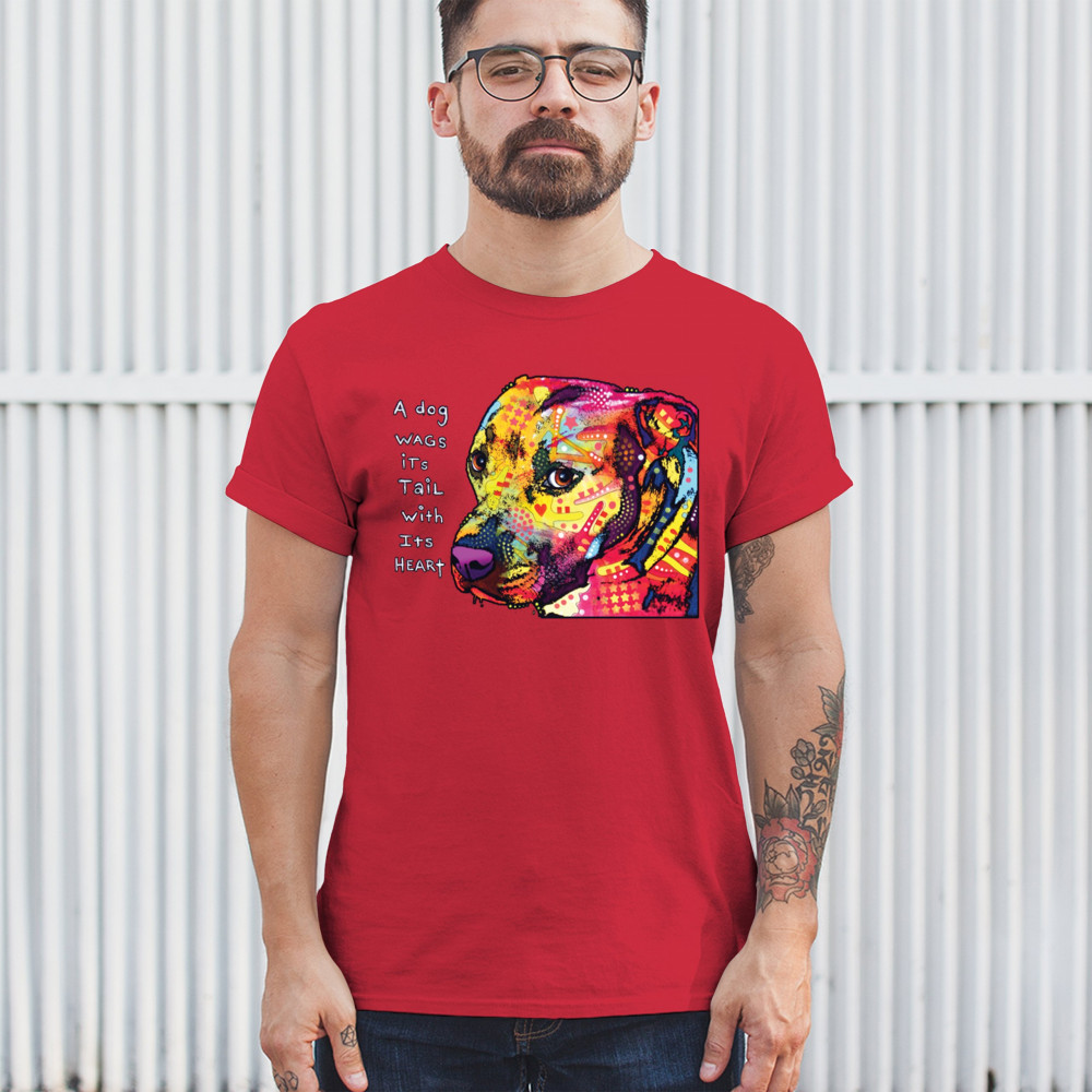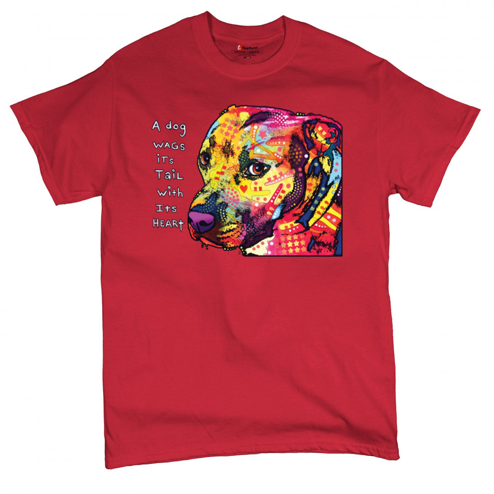 DEAN RUSSO PIT BULL t-shirt dog wags its tail with its heart men's tee red