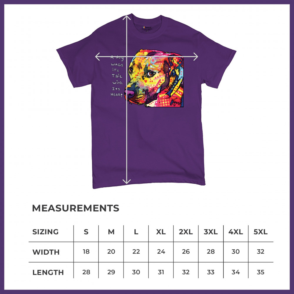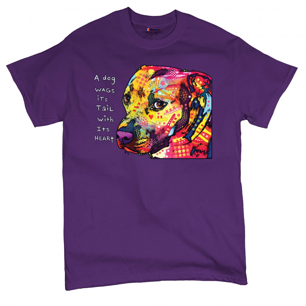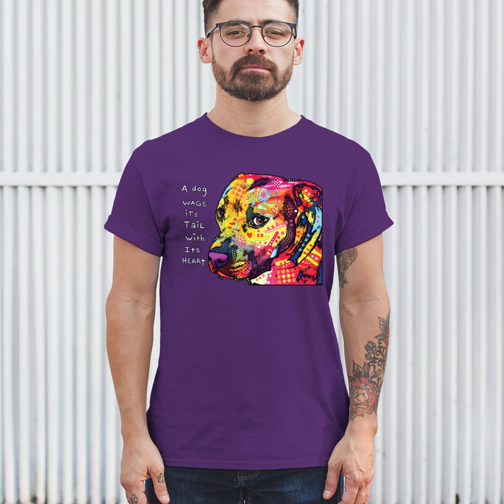 DEAN RUSSO PIT BULL t-shirt dog wags its tail with its heart men's tee purple