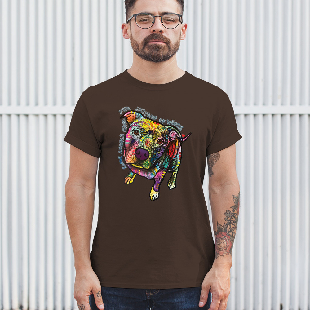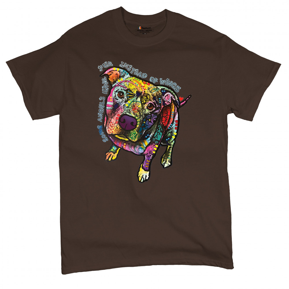 DEAN RUSSO PIT BULL t-shirt some angels have fur instead of wings men's tee brown