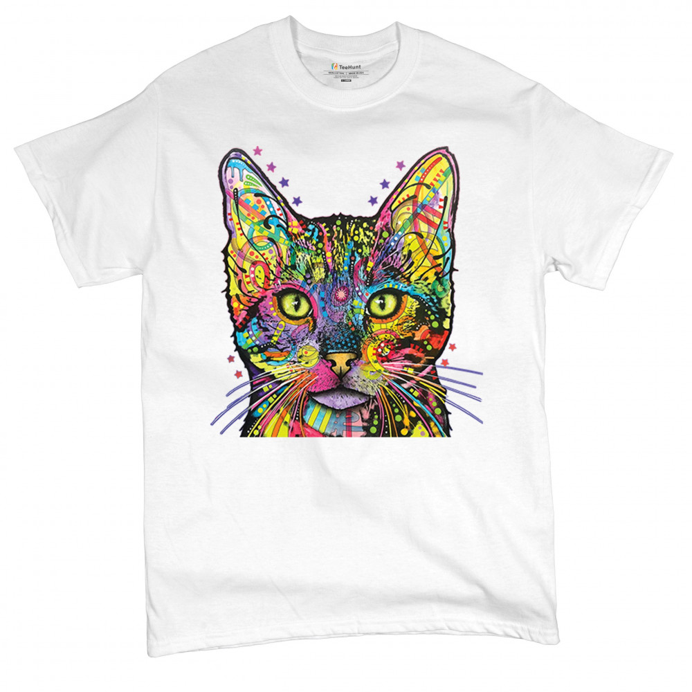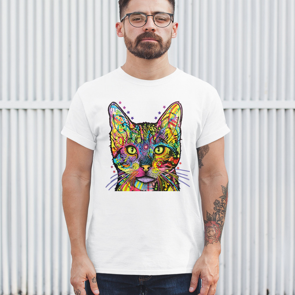 DEAN RUSSO SHIVA CAT STARE t-shirt neon mosaic colorful kitten eyes men's tee white