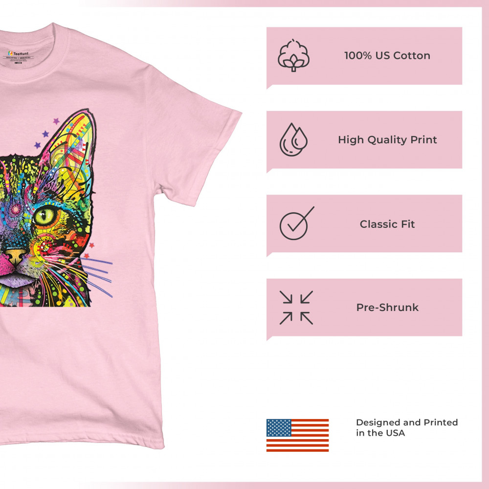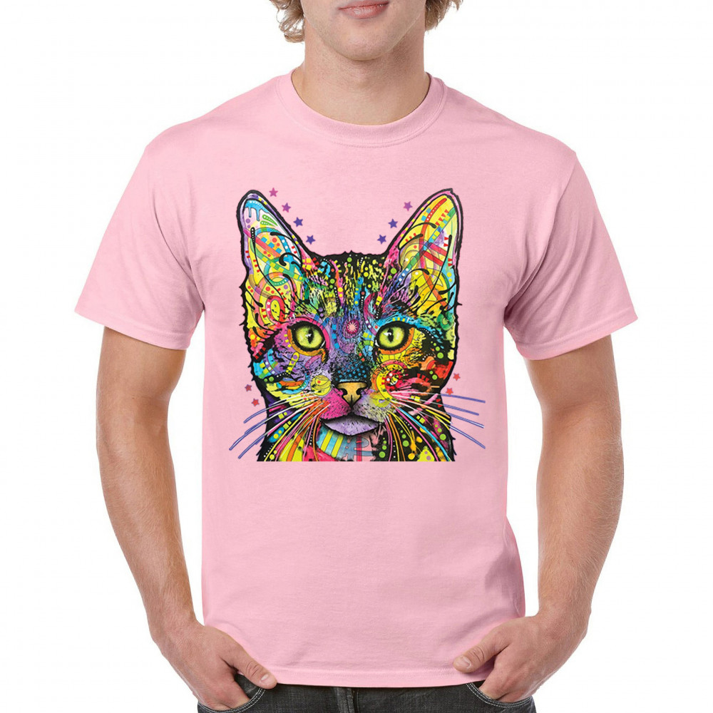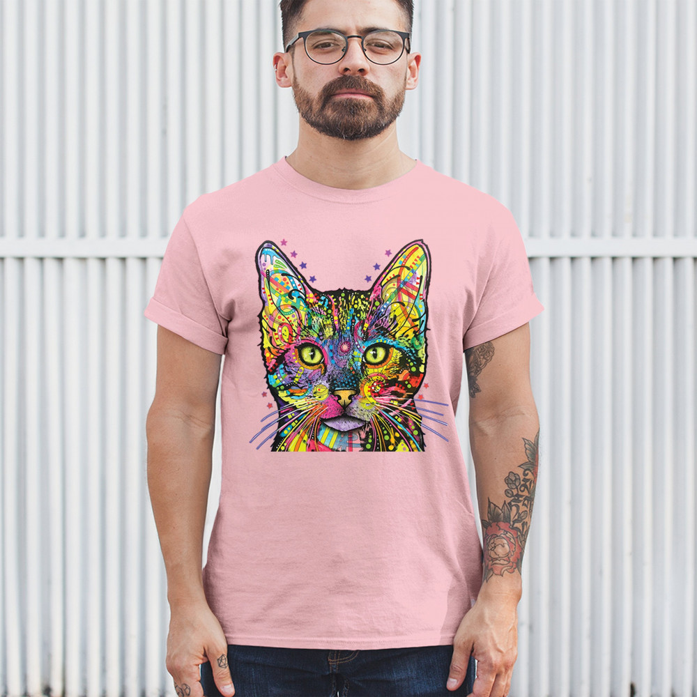 DEAN RUSSO SHIVA CAT STARE t-shirt neon mosaic colorful kitten eyes men's tee light pink