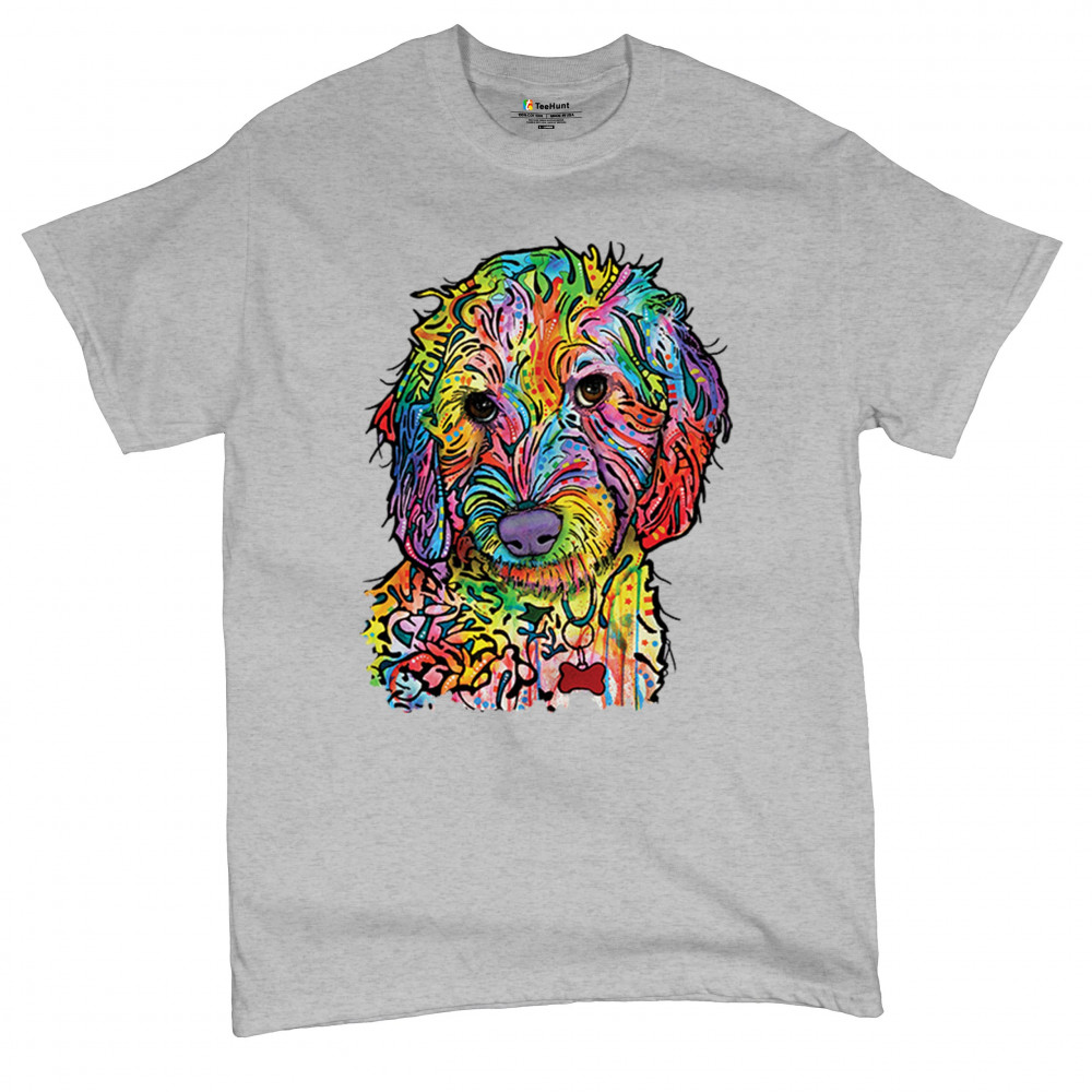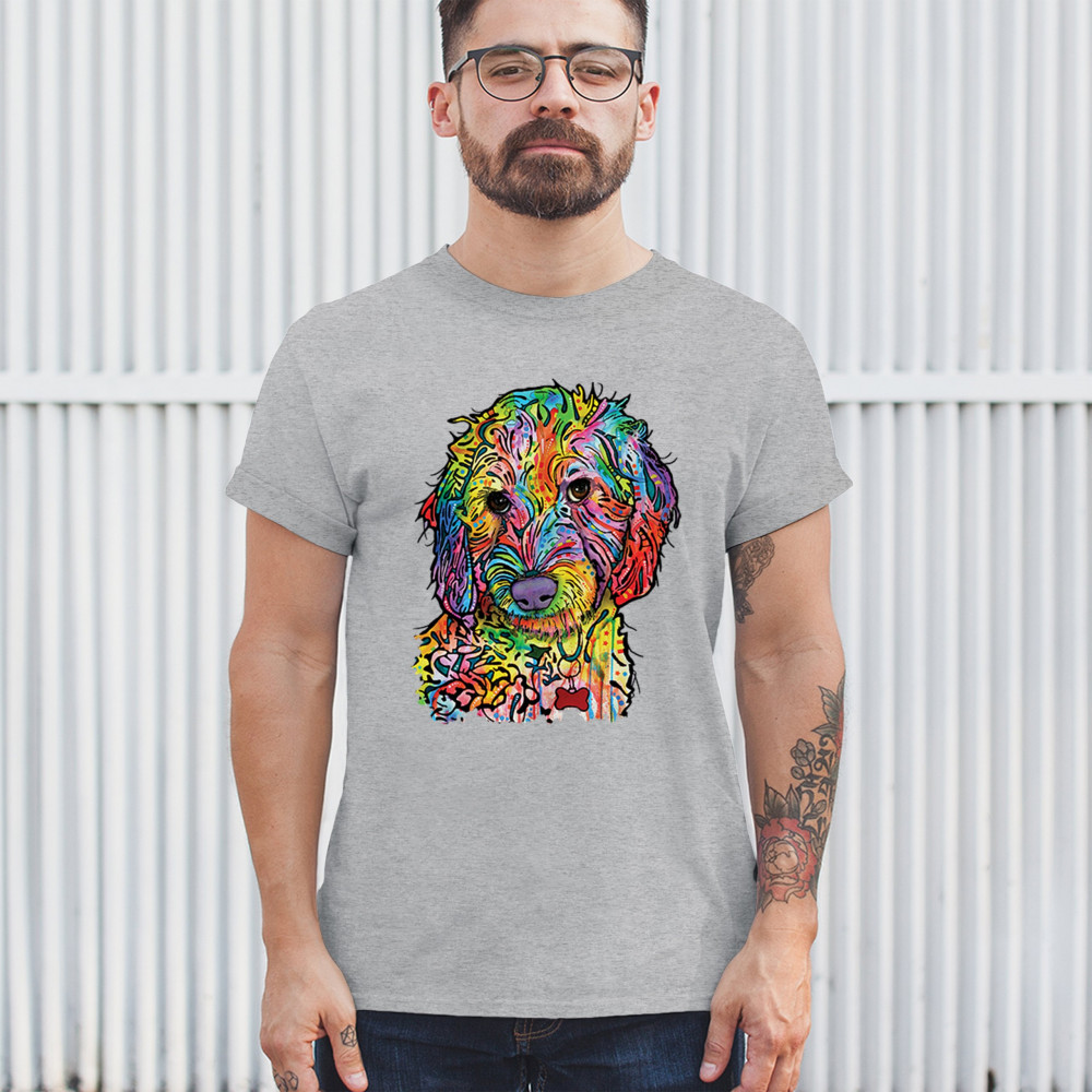 DEAN RUSSO SWEET POODLE t-shirt dog pattern puppy adopt pet men's tee gray