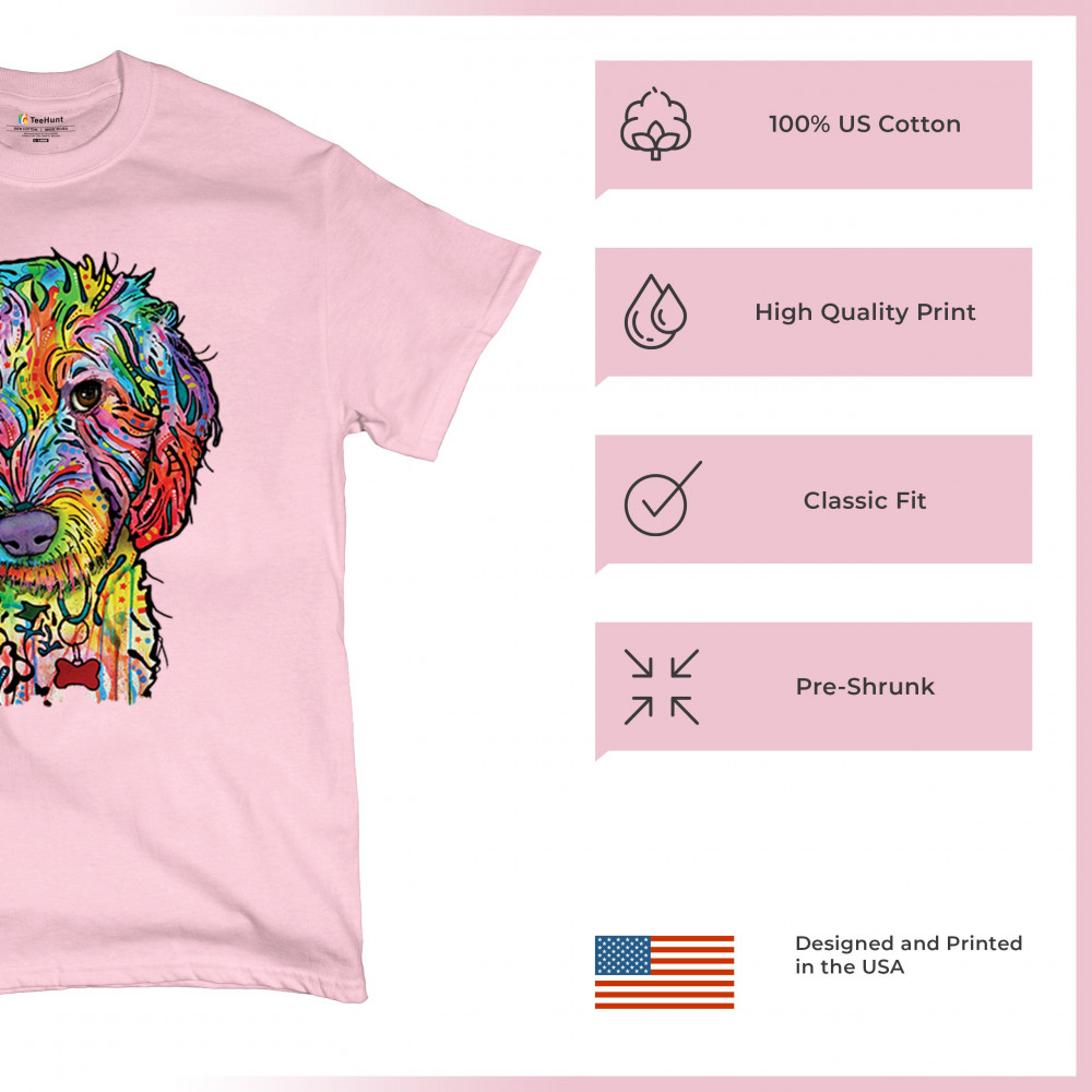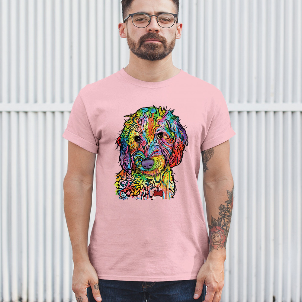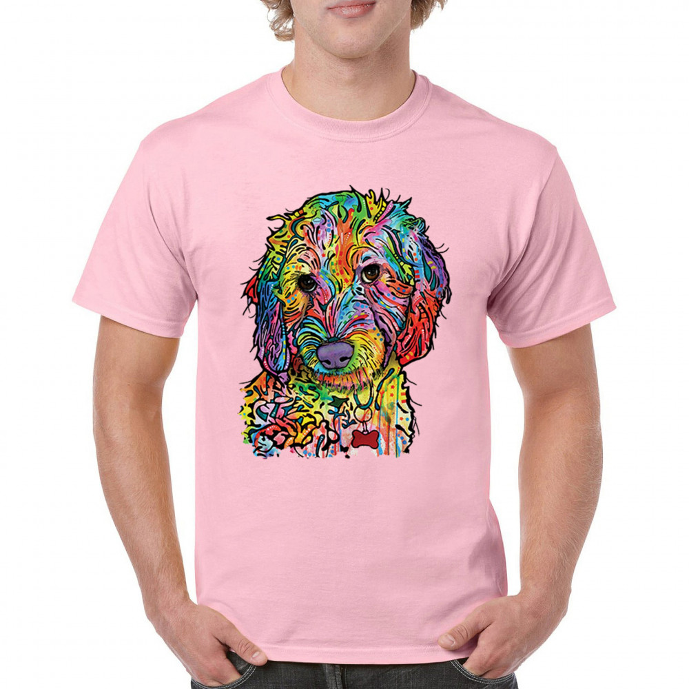 DEAN RUSSO SWEET POODLE t-shirt dog pattern puppy adopt pet men's tee light pink