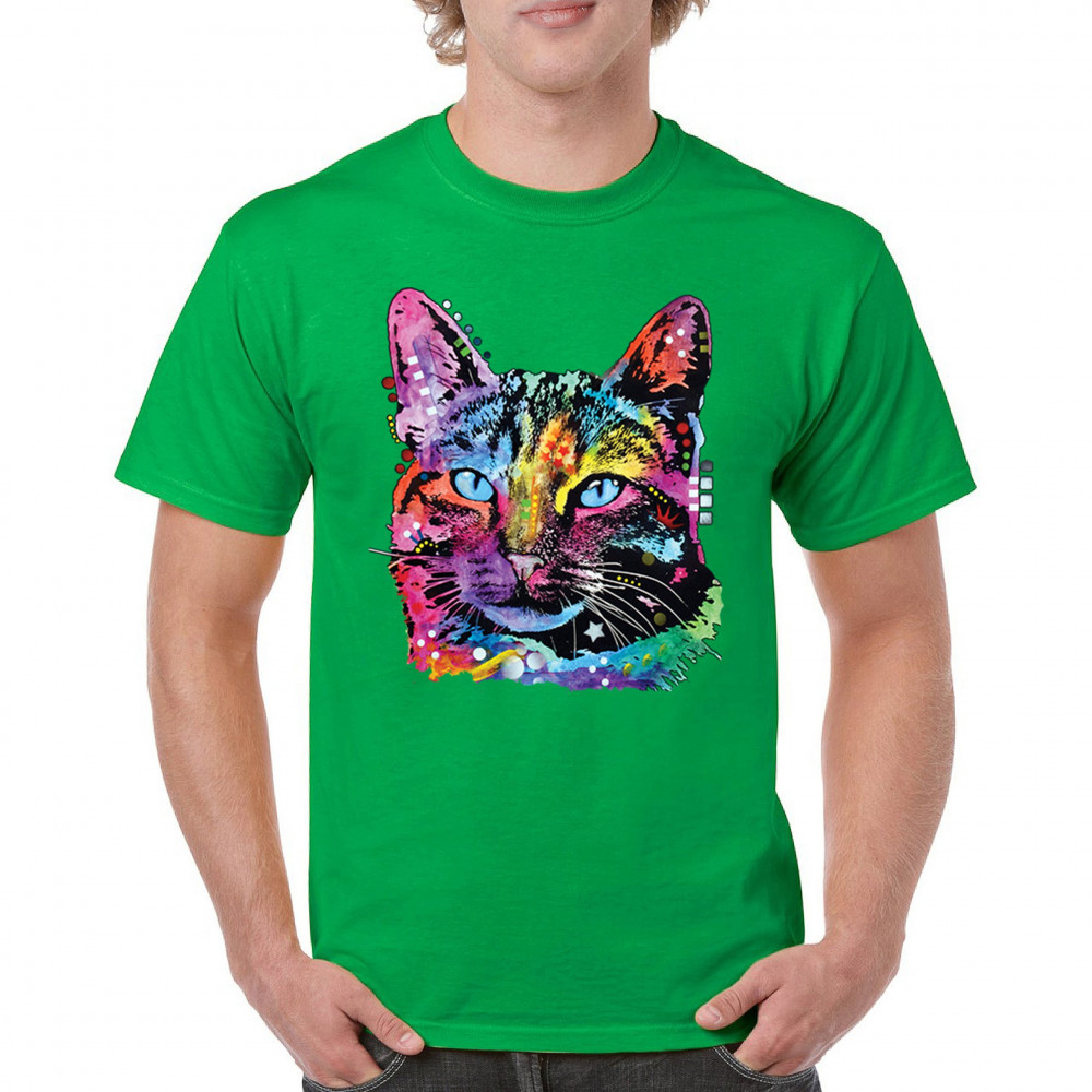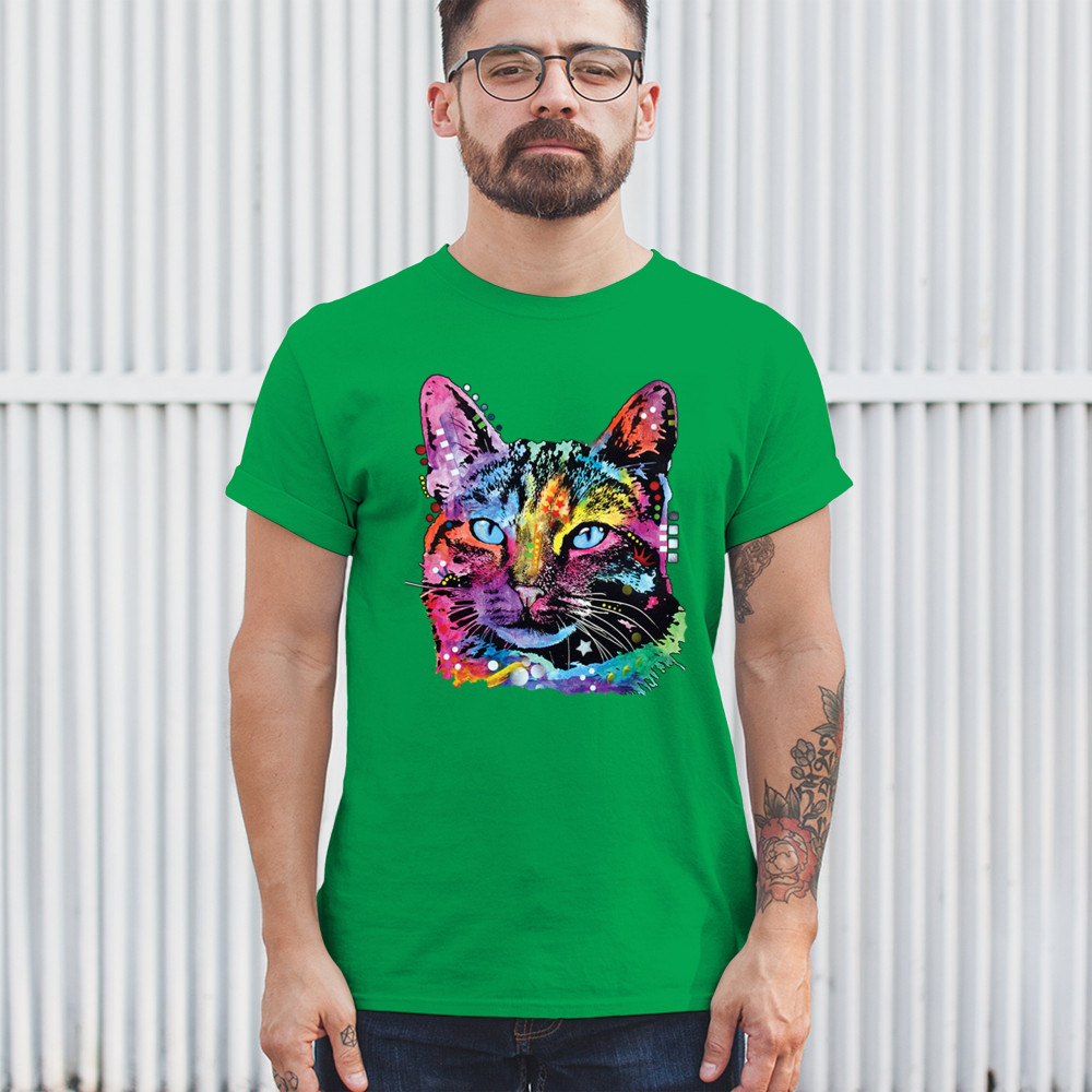 DEAN RUSSO THOUGHTFUL CAT t-shirt colorful pet kitten eyes men's tee green