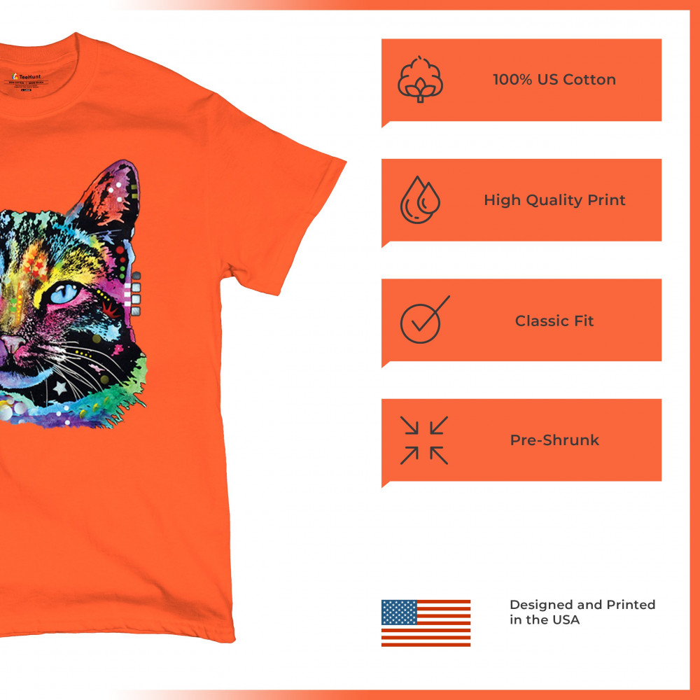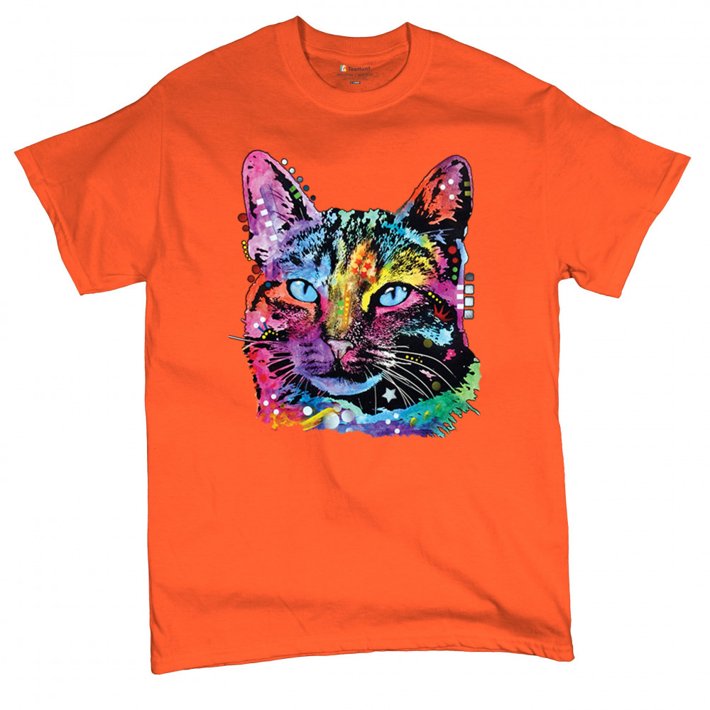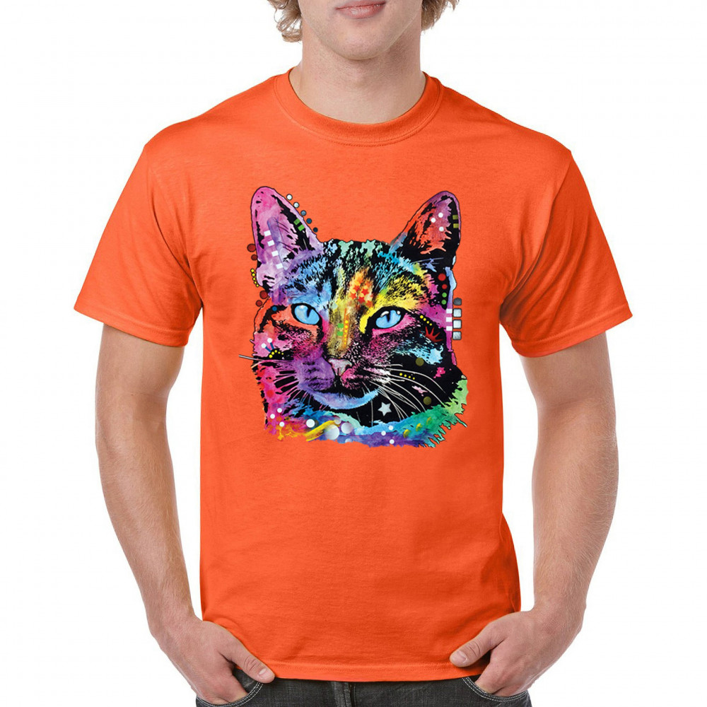 DEAN RUSSO THOUGHTFUL CAT t-shirt colorful pet kitten eyes men's tee orange