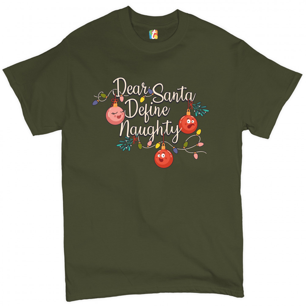 DEAR SANTA DEFINE NAUGHTY t-shirt merry christmas naughty or nice men's tee military green