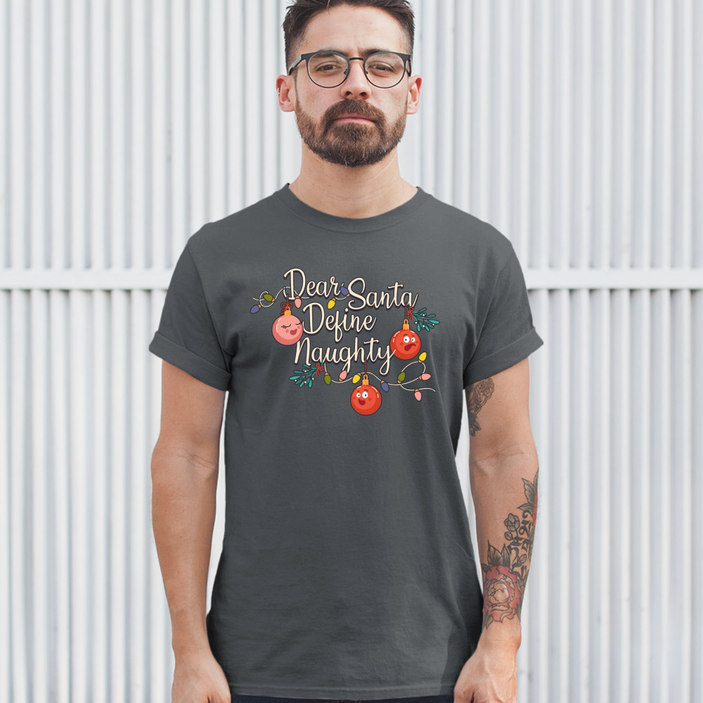 DEAR SANTA DEFINE NAUGHTY t-shirt merry christmas naughty or nice men's tee charcoal