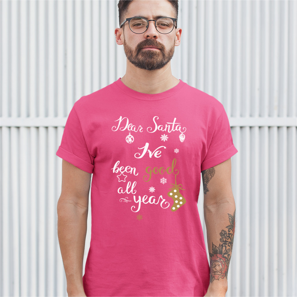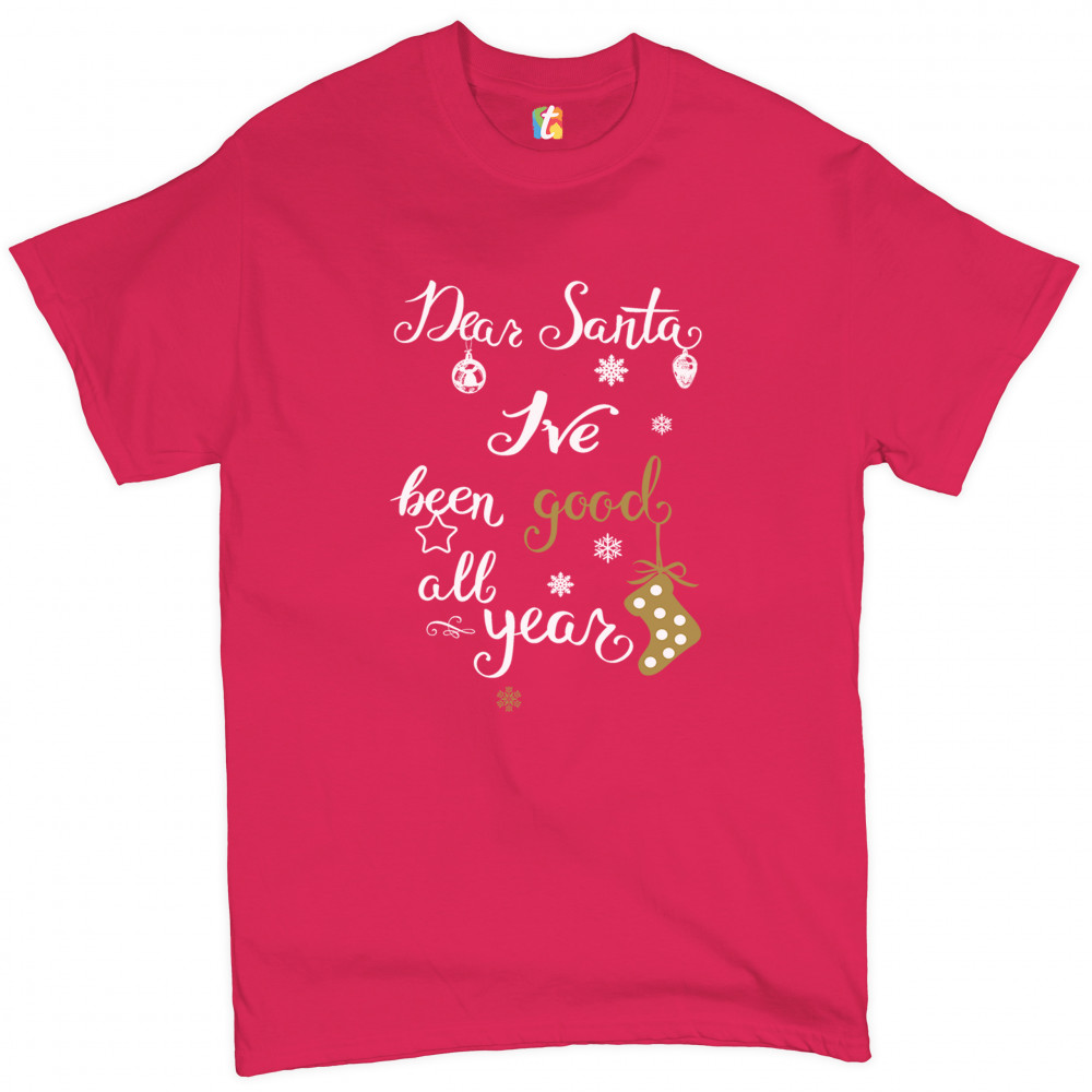 DEAR SANTA I'VE BEEN GOOD ALL YEAR t-shirt funny christmas xmas men's tee hot pink