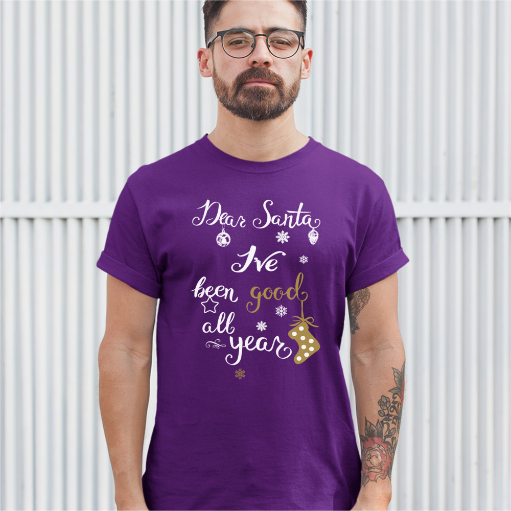 DEAR SANTA I'VE BEEN GOOD ALL YEAR t-shirt funny christmas xmas men's tee purple