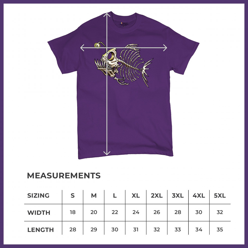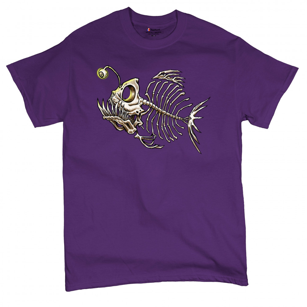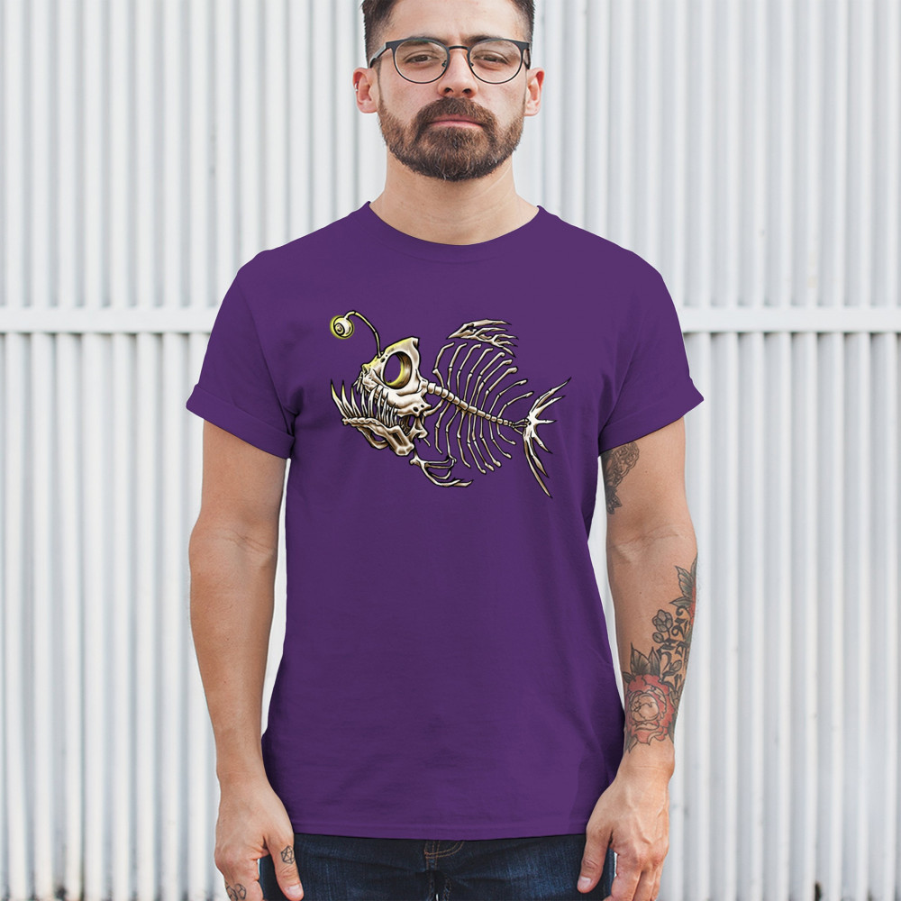 This highly detailed angler fish skeleton design features sharp bones, glowing lure eye, and deep sea terror aesthetic. Perfect for horror fans, marine biology lovers, and ocean adventurers, it combines underwater predator vibes with bone art flair. A great fit for Halloween, dive clubs, and dark sea aesthetics.