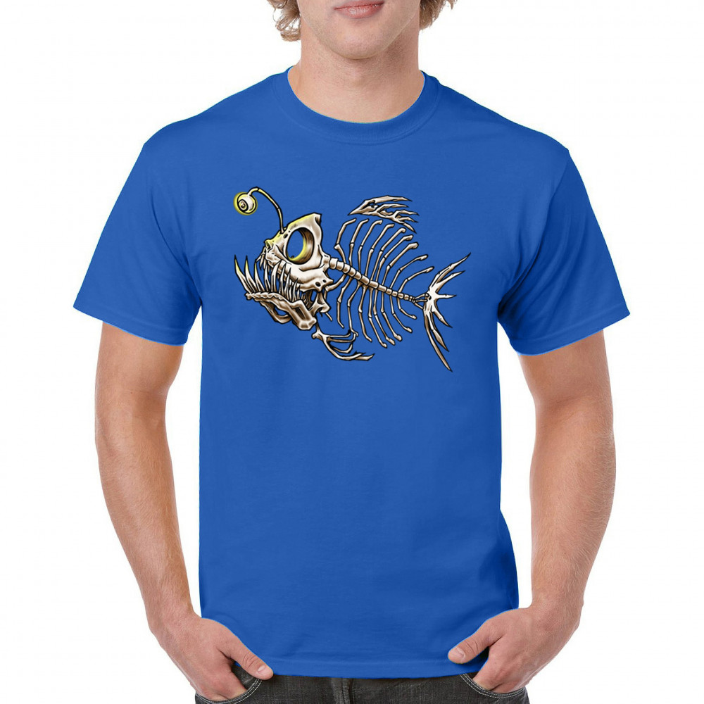 This highly detailed angler fish skeleton design features sharp bones, glowing lure eye, and deep sea terror aesthetic. Perfect for horror fans, marine biology lovers, and ocean adventurers, it combines underwater predator vibes with bone art flair. A great fit for Halloween, dive clubs, and dark sea aesthetics.