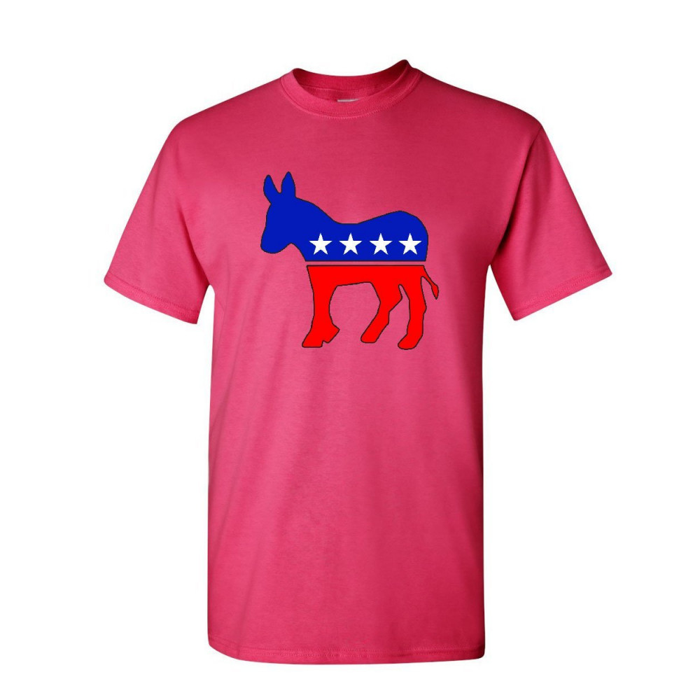 DEMOCRATIC PARTY DONKEY logo t-shirt political liberal left wing mens tee shirt hot pink