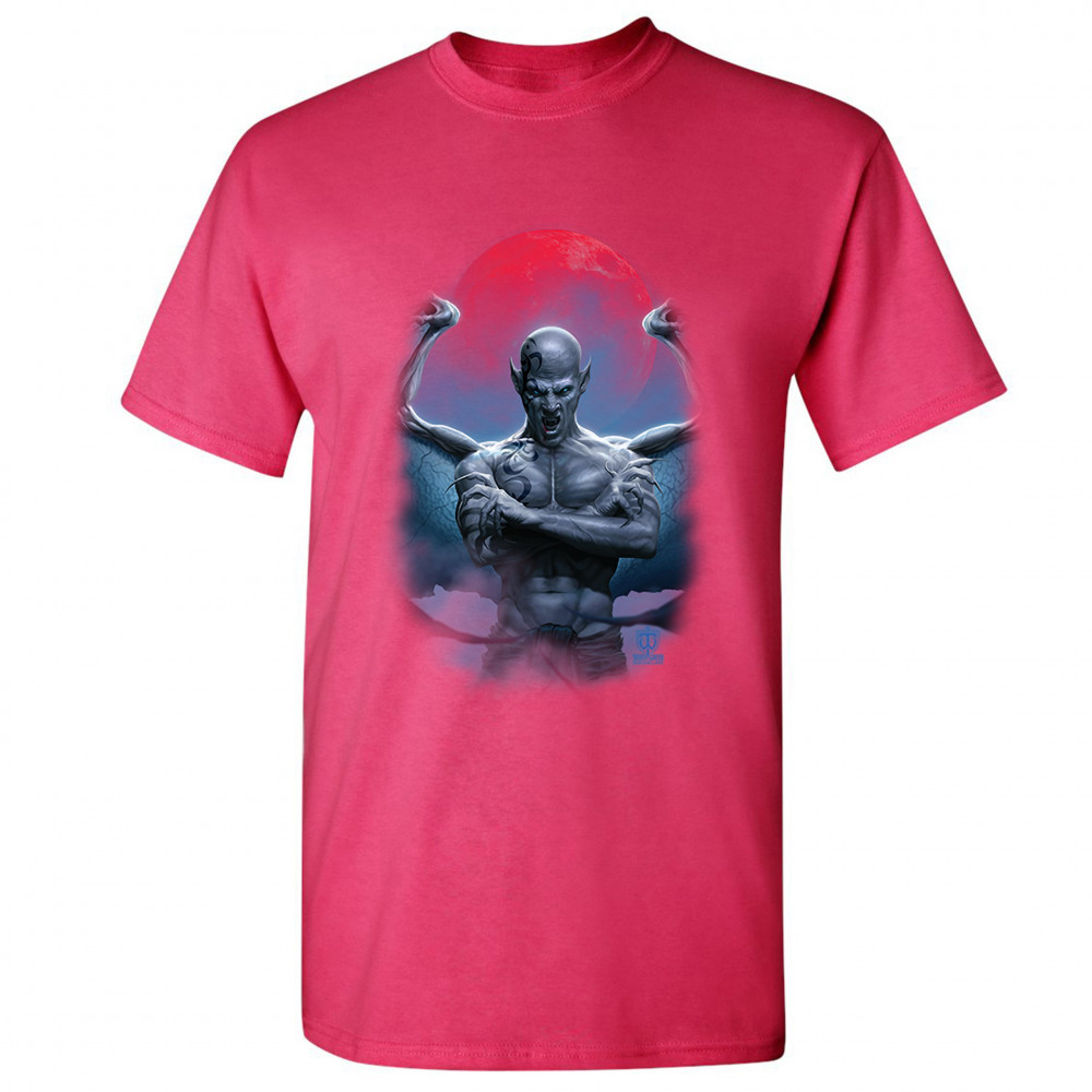DEMON GARGOYLE t-shirt blood moon scary halloween monster men's tee hot pink