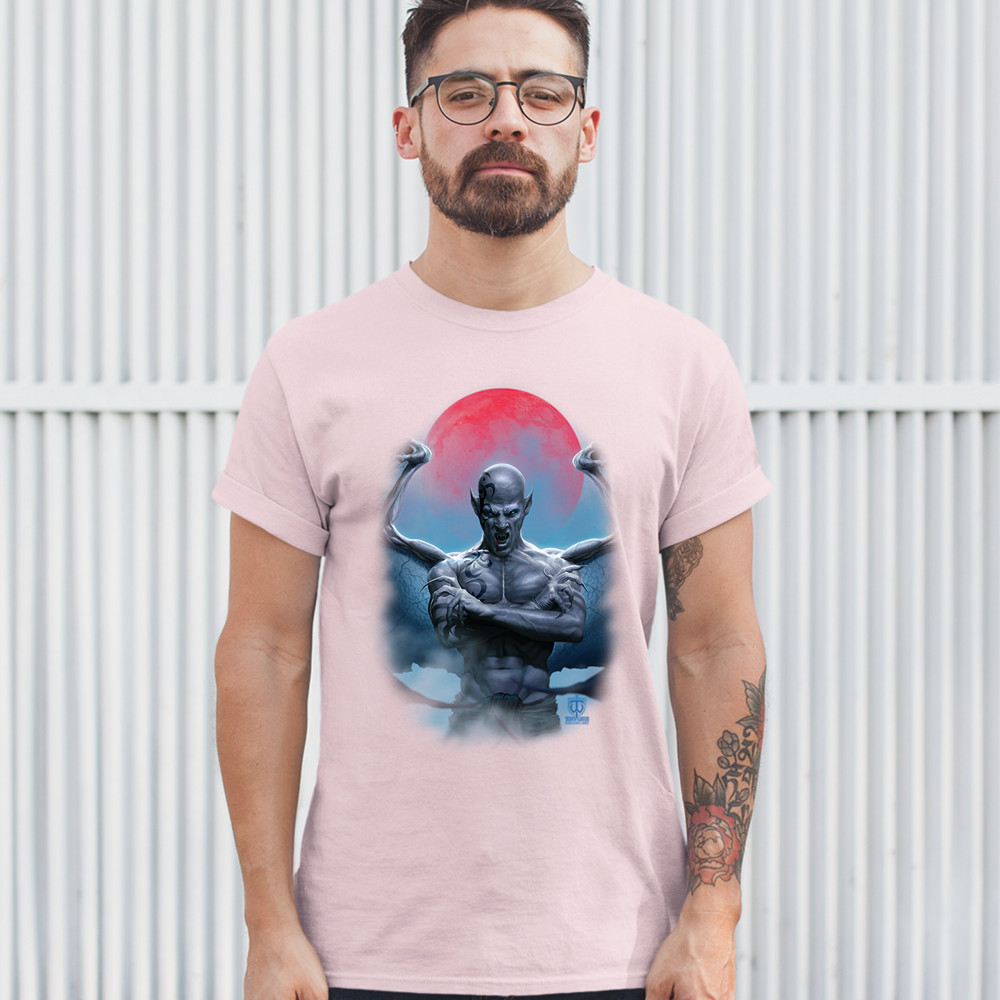 DEMON GARGOYLE t-shirt blood moon scary halloween monster men's tee light pink