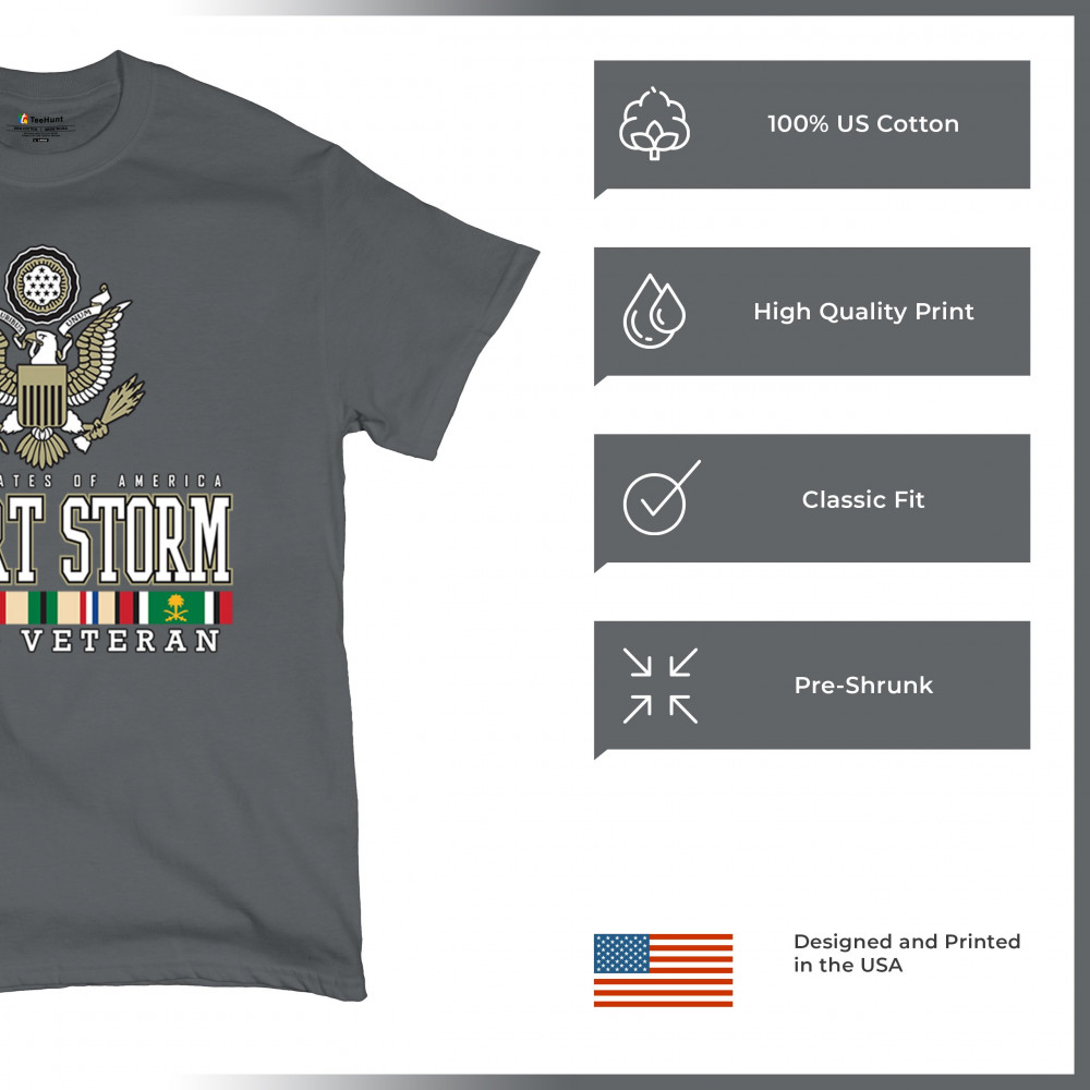 Commemorate Desert Storm with our proud veteran design, celebrating the enduring spirit and sacrifice of U.S. Army warriors and their dedication to duty.