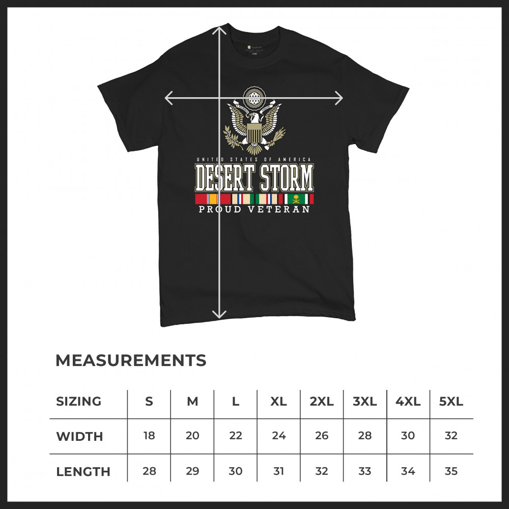 Commemorate Desert Storm with our proud veteran design, celebrating the enduring spirit and sacrifice of U.S. Army warriors and their dedication to duty.