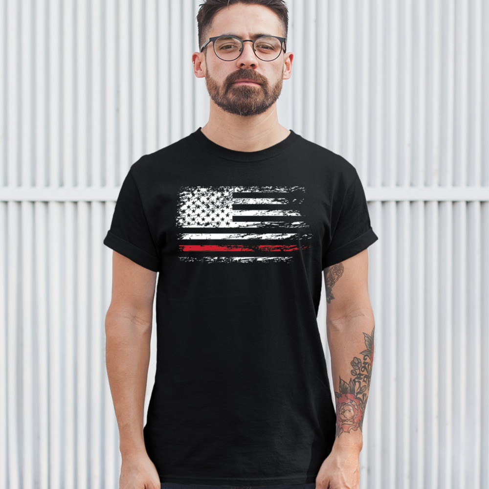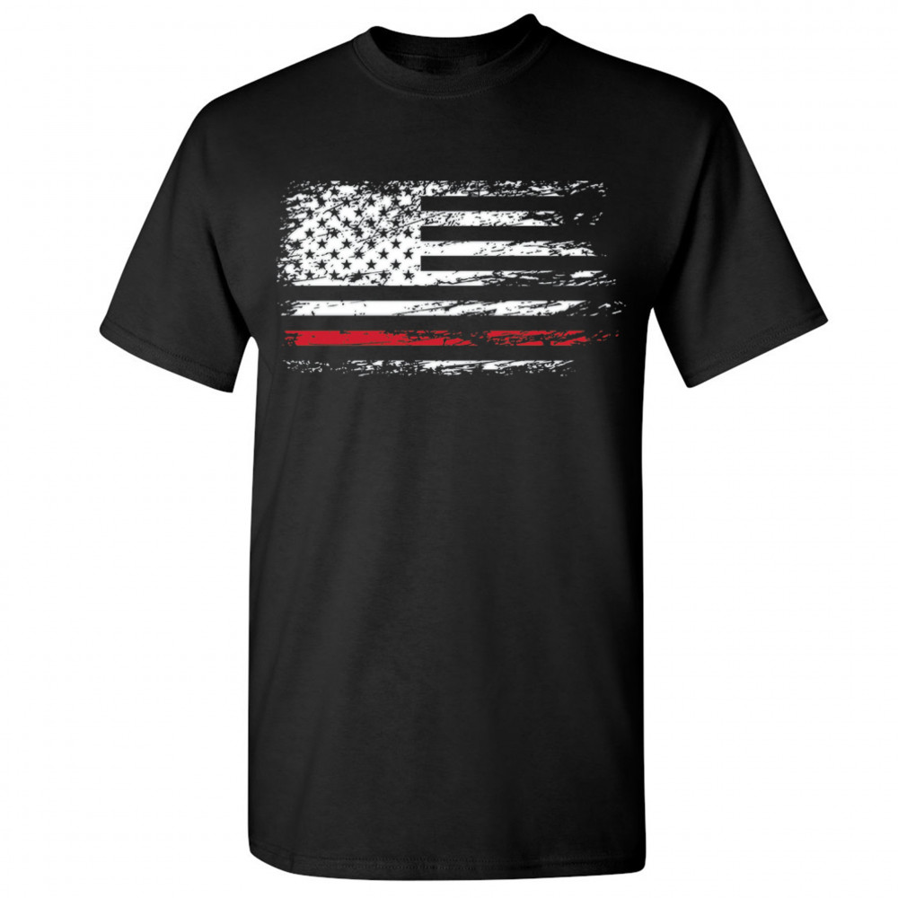 DISTRESSED AMERICAN FLAG t-shirt thind red line firefighter men's tee black