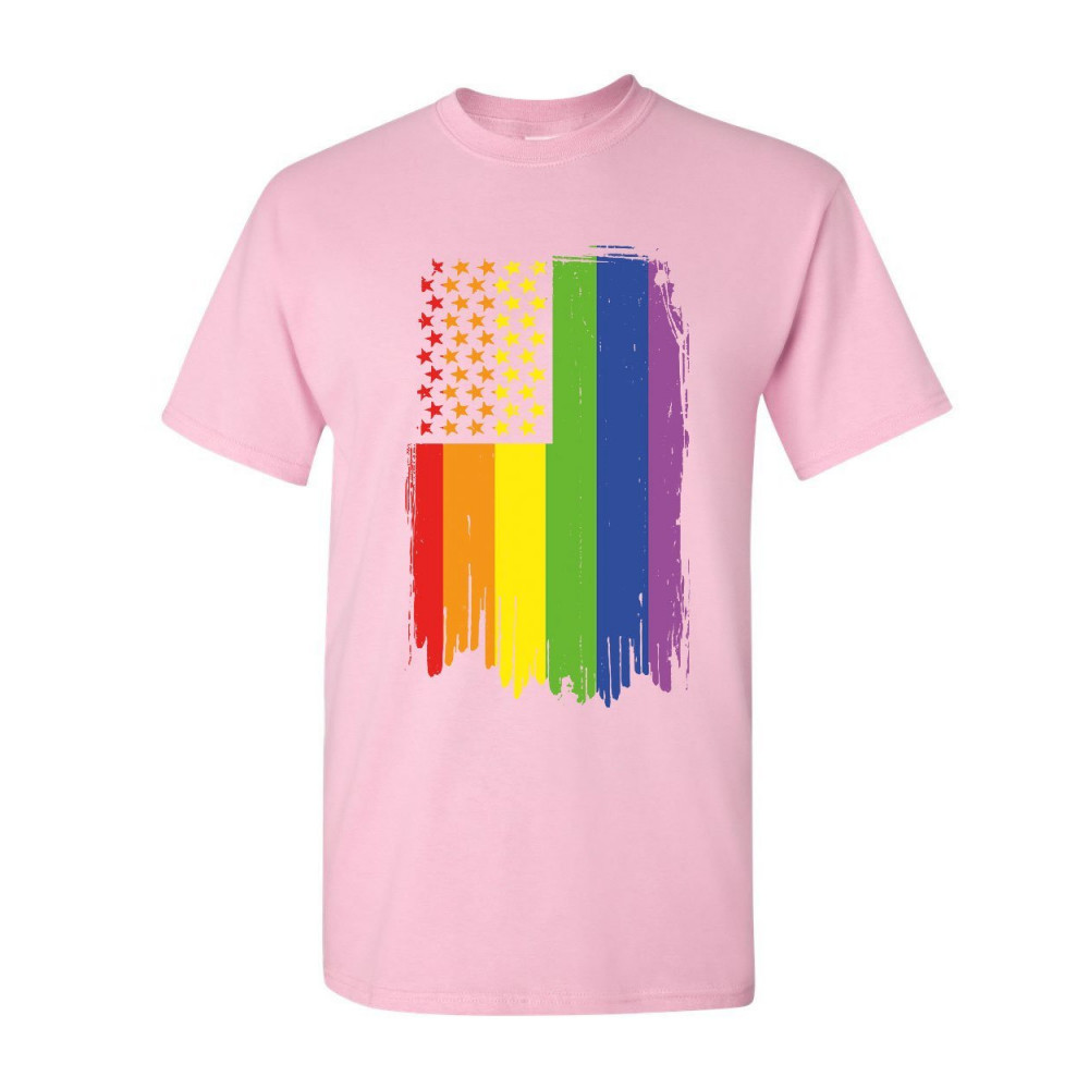 DISTRESSED GAY PRIDE RAINBOW FLAG t-shirt lgbtq love wins tee light pink