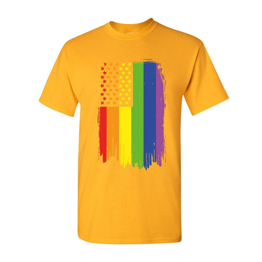 DISTRESSED GAY PRIDE RAINBOW FLAG t-shirt lgbtq love wins tee yellow