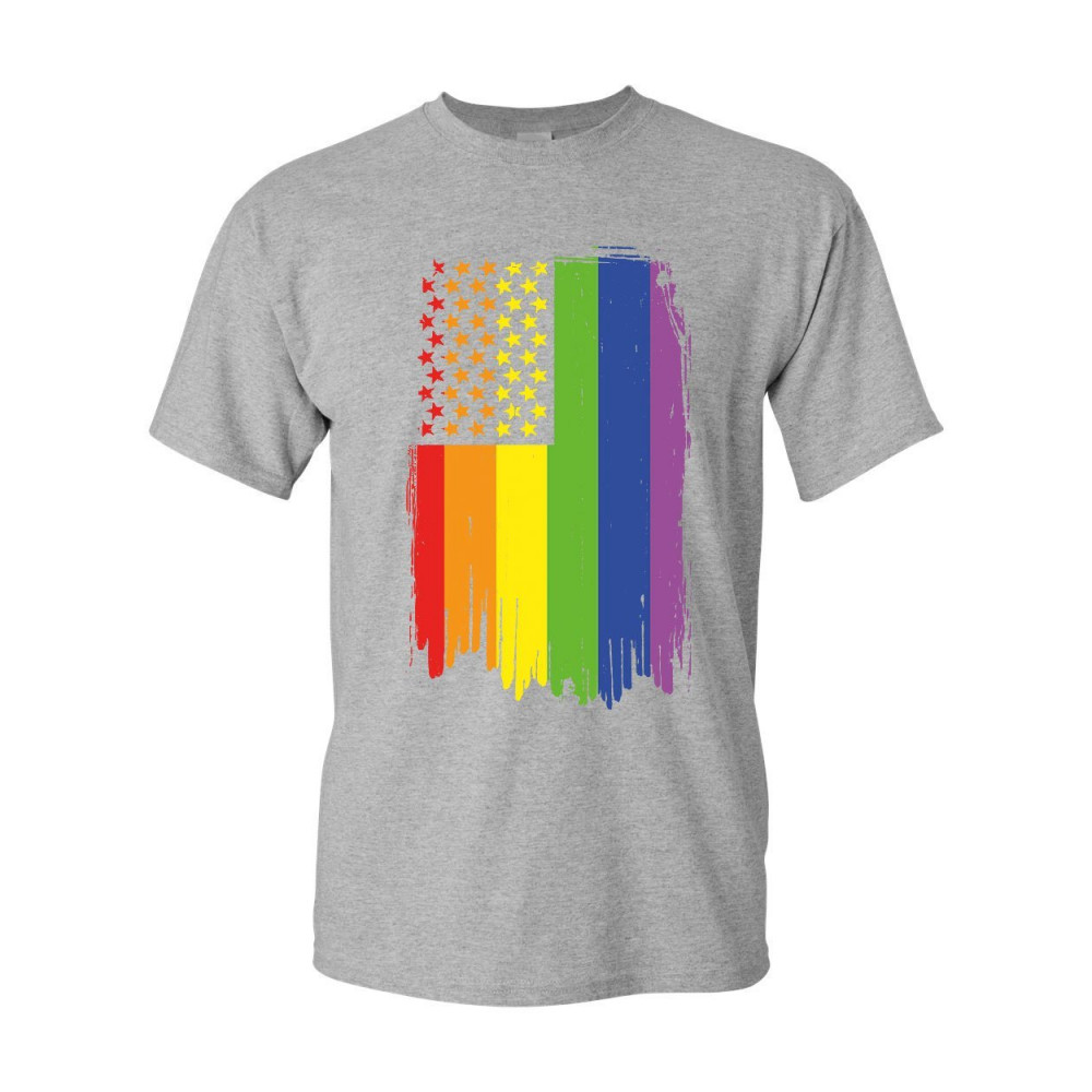 DISTRESSED GAY PRIDE RAINBOW FLAG t-shirt lgbtq love wins tee sport gray