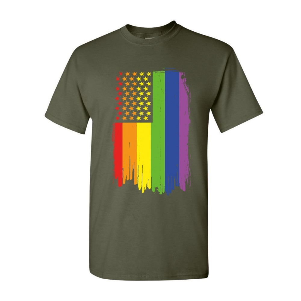 DISTRESSED GAY PRIDE RAINBOW FLAG t-shirt lgbtq love wins tee military green