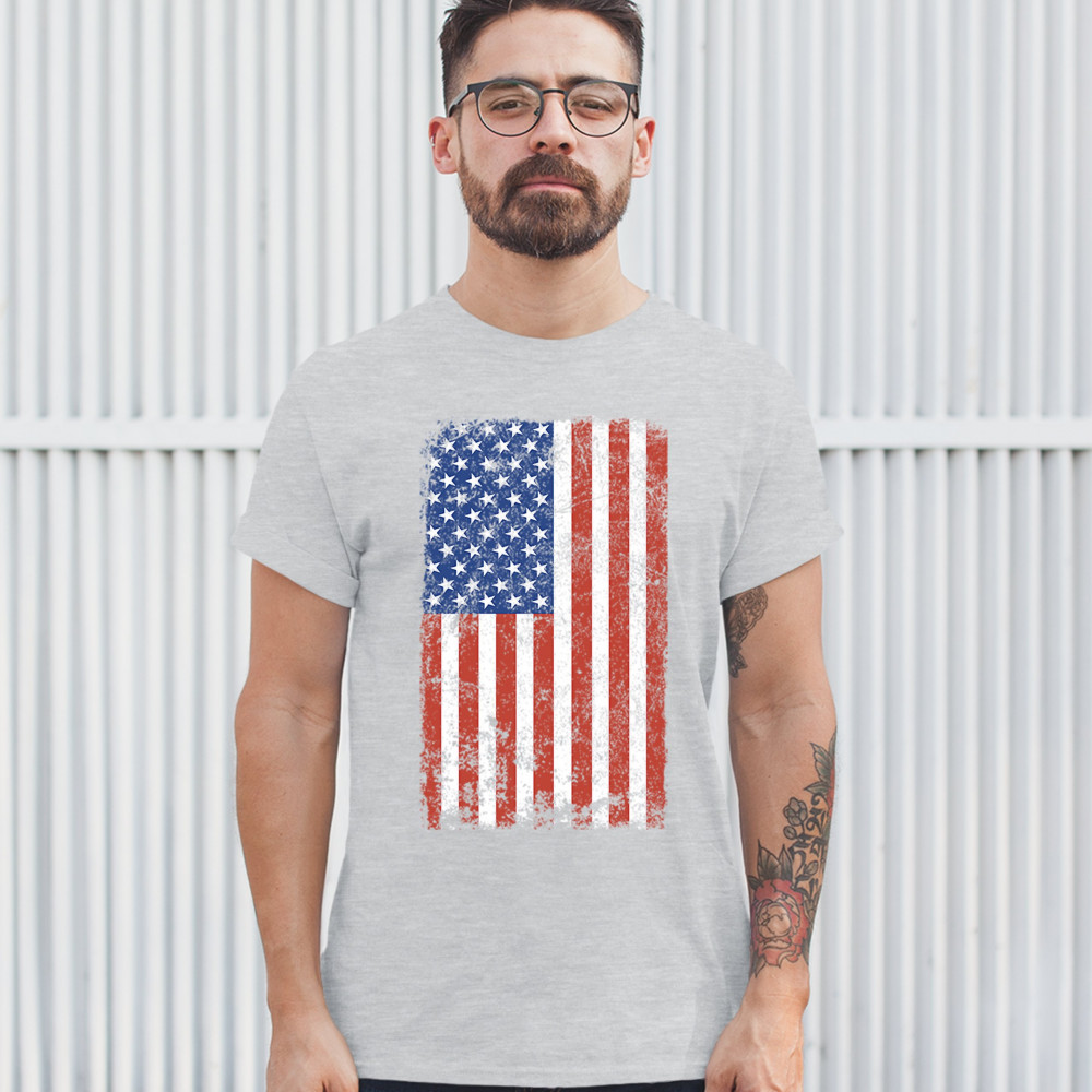 DISTRESSED GRUNGE AMERICAN FLAG t-shirt vintage 4th of july usa men's tee ash gray