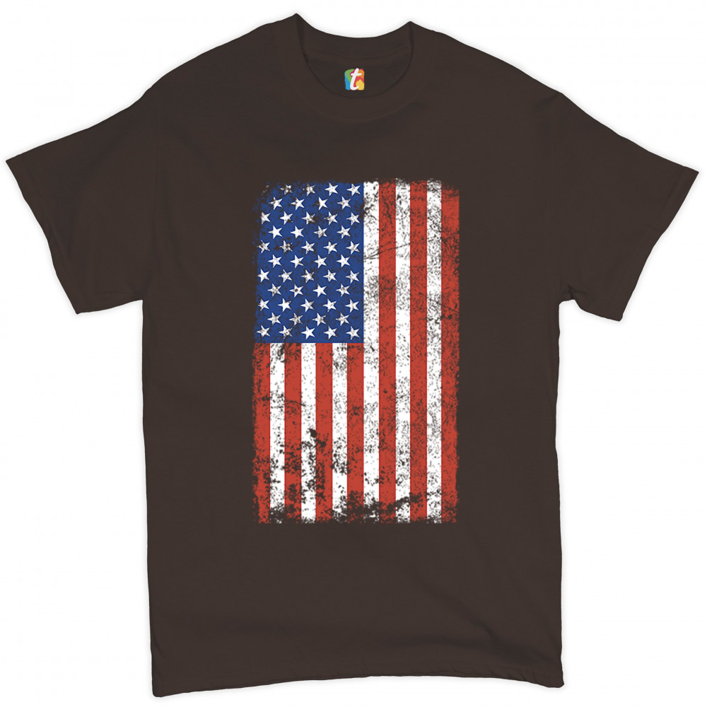 DISTRESSED GRUNGE AMERICAN FLAG t-shirt vintage 4th of july usa men's tee brown