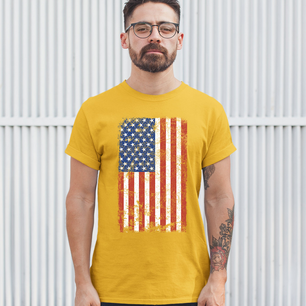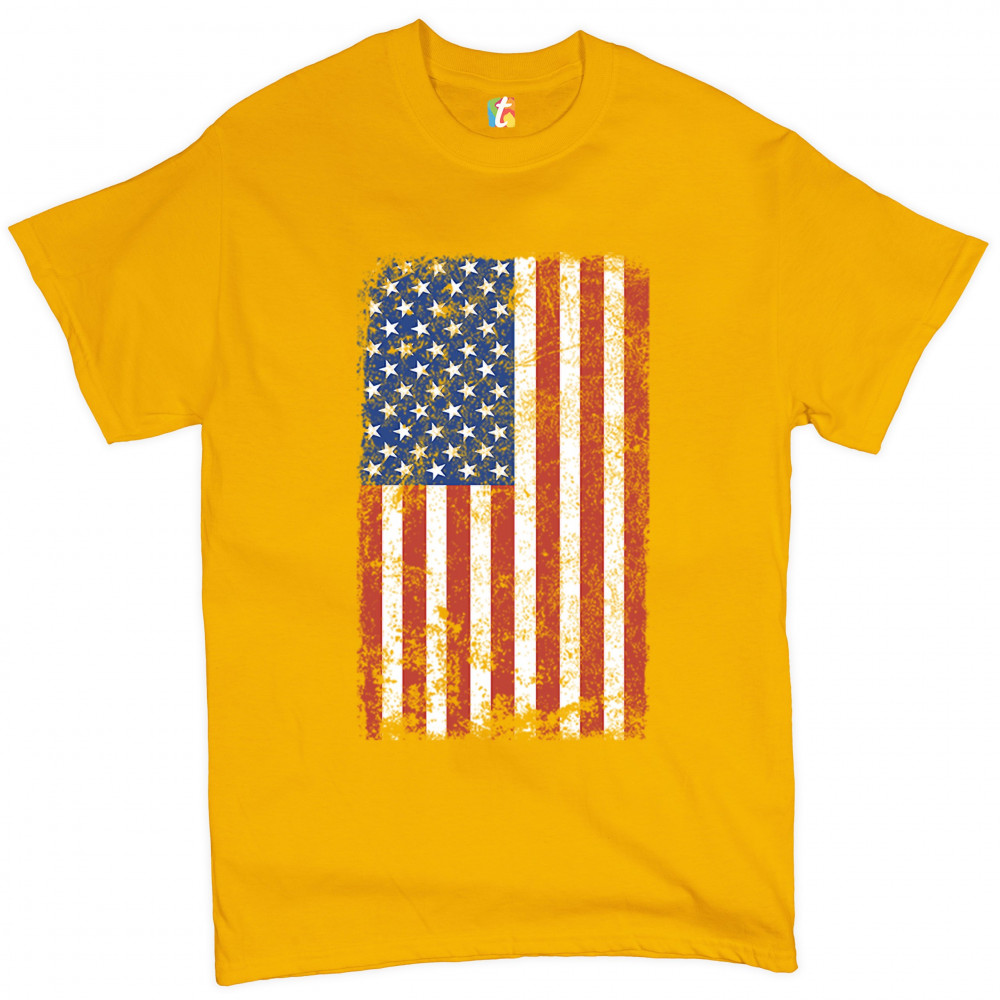 DISTRESSED GRUNGE AMERICAN FLAG t-shirt vintage 4th of july usa men's tee yellow