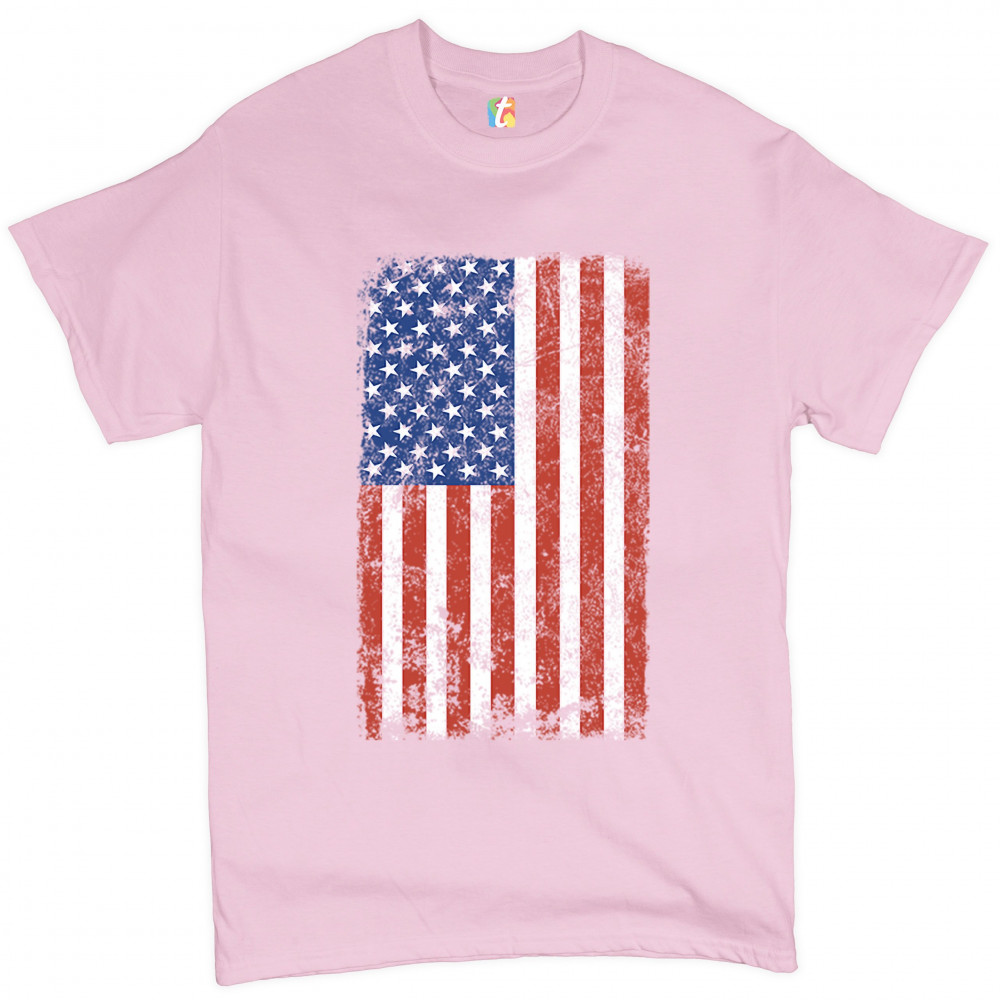DISTRESSED GRUNGE AMERICAN FLAG t-shirt vintage 4th of july usa men's tee light pink