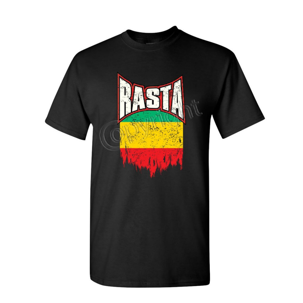 DISTRESSED RASTA FLAG t-shirt smoking 420 reggae marijuana weed mens tee shirt black