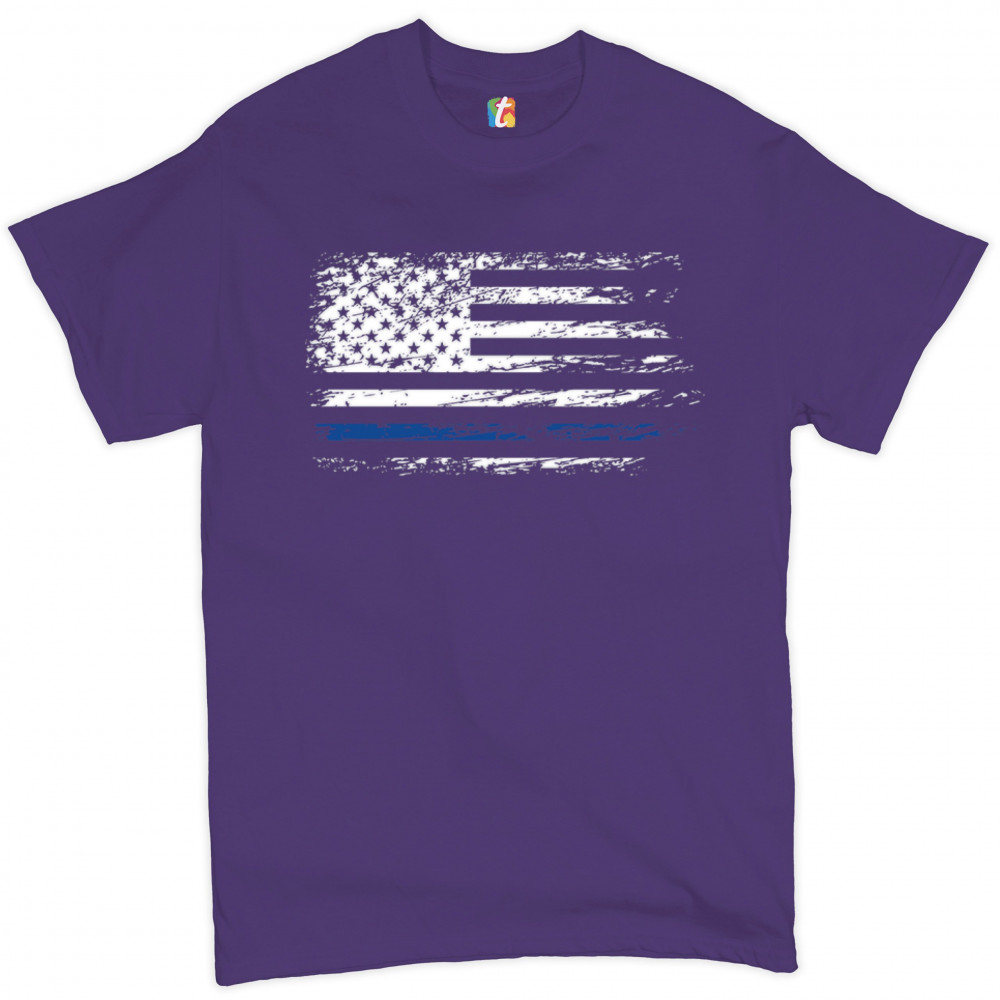 DISTRESSED THIN BLUE LINE AMERICAN FLAG t-shirt patriotic police men's tee purple