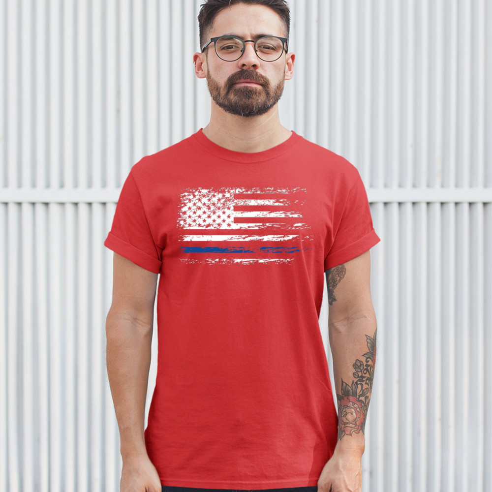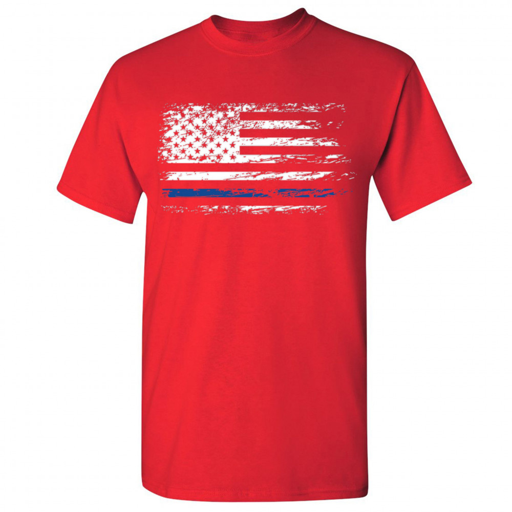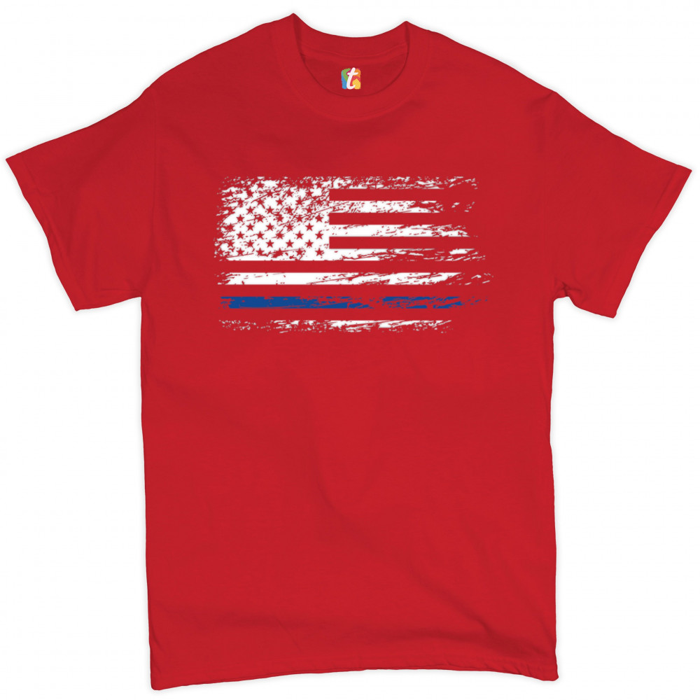 DISTRESSED THIN BLUE LINE AMERICAN FLAG t-shirt patriotic police men's tee red