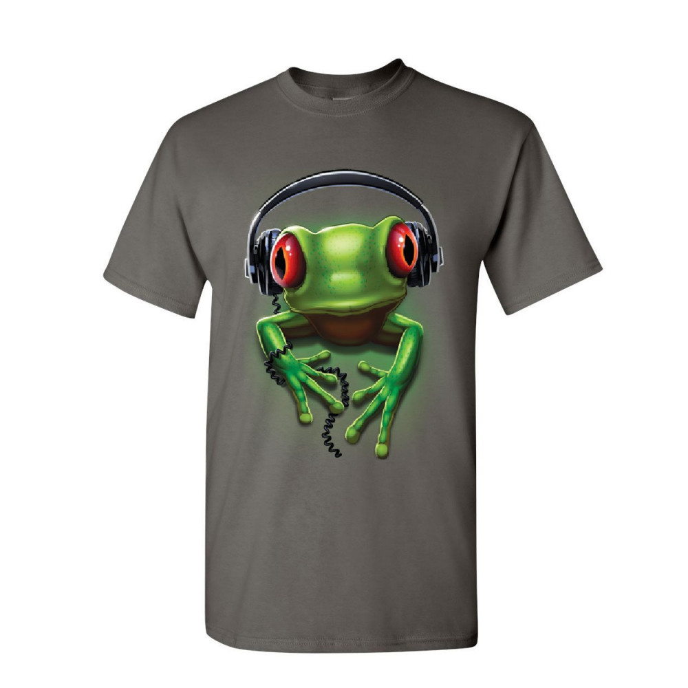 DJ FROG WITH HEADPHONES t-shirt cute animal music wildlife rock mens tee shirt charcoal