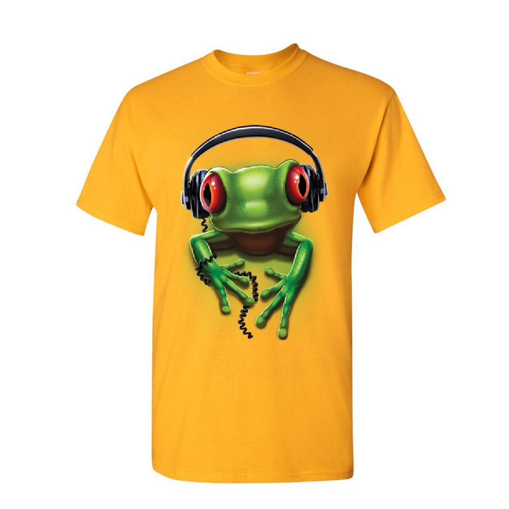 DJ FROG WITH HEADPHONES t-shirt cute animal music wildlife rock mens tee shirt yellow