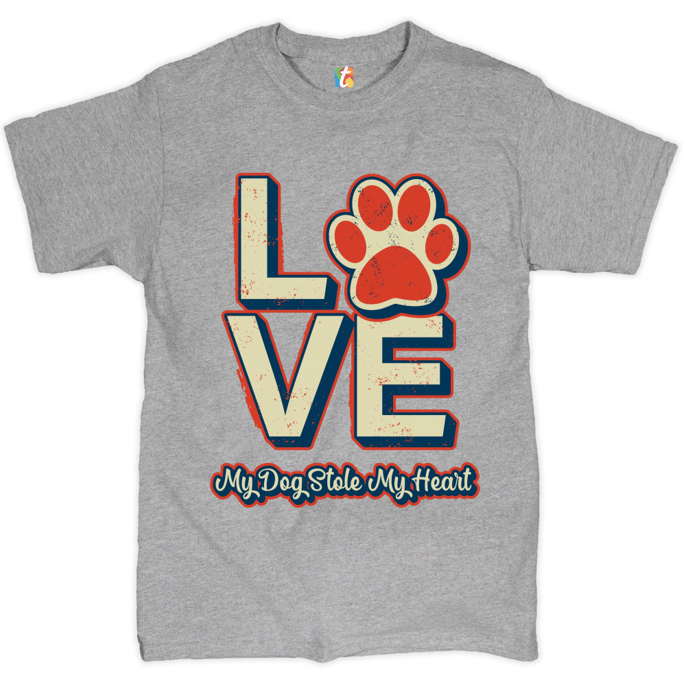 DOG PAW LOVE t-shirt my dog stole my heart pet owner animal lover men's tee gray