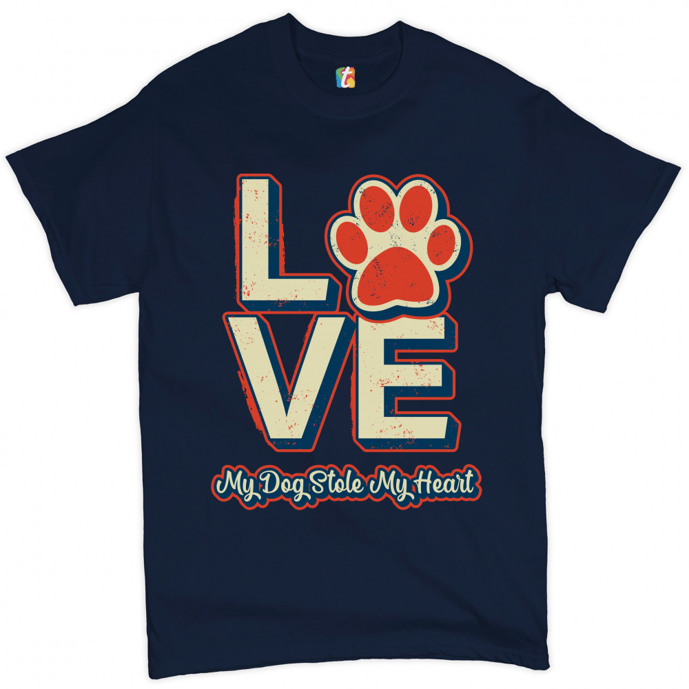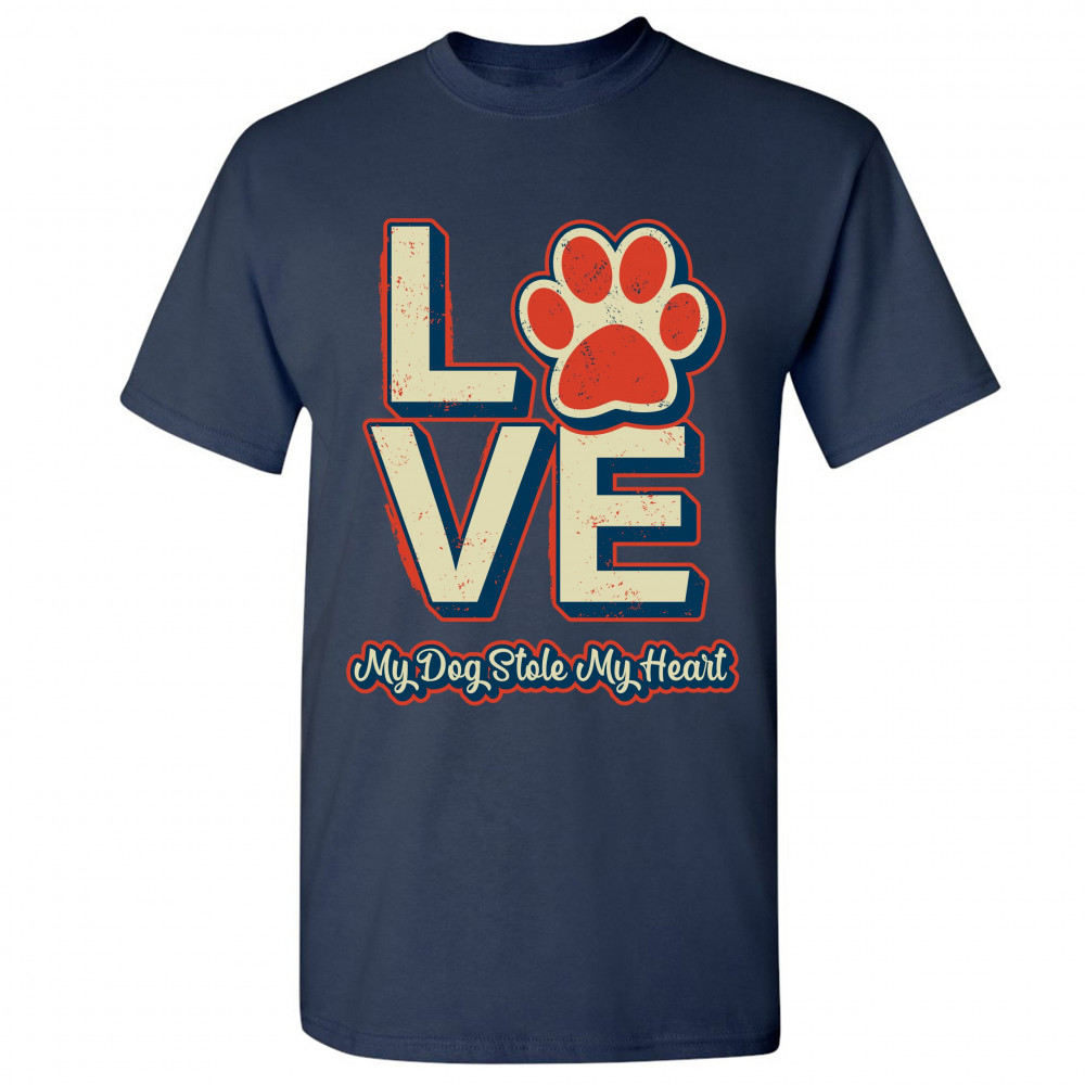 DOG PAW LOVE t-shirt my dog stole my heart pet owner animal lover men's tee navy blue