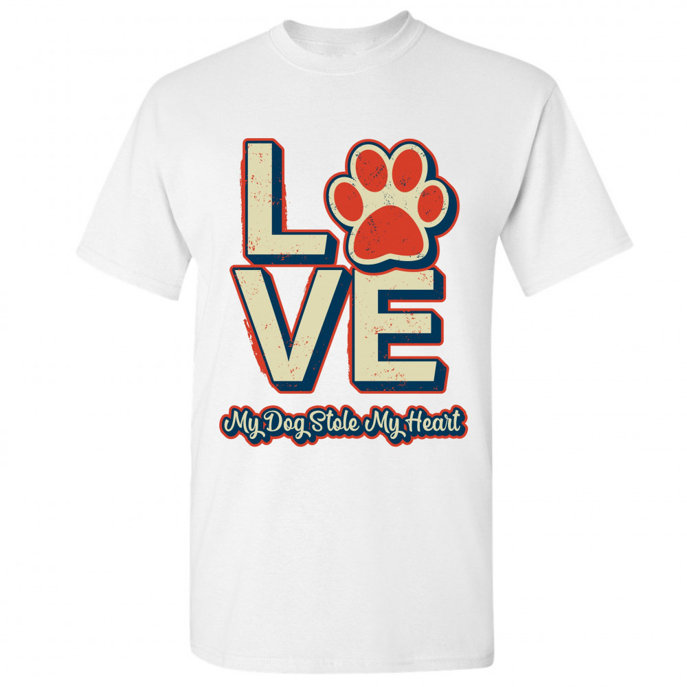DOG PAW LOVE t-shirt my dog stole my heart pet owner animal lover men's tee white