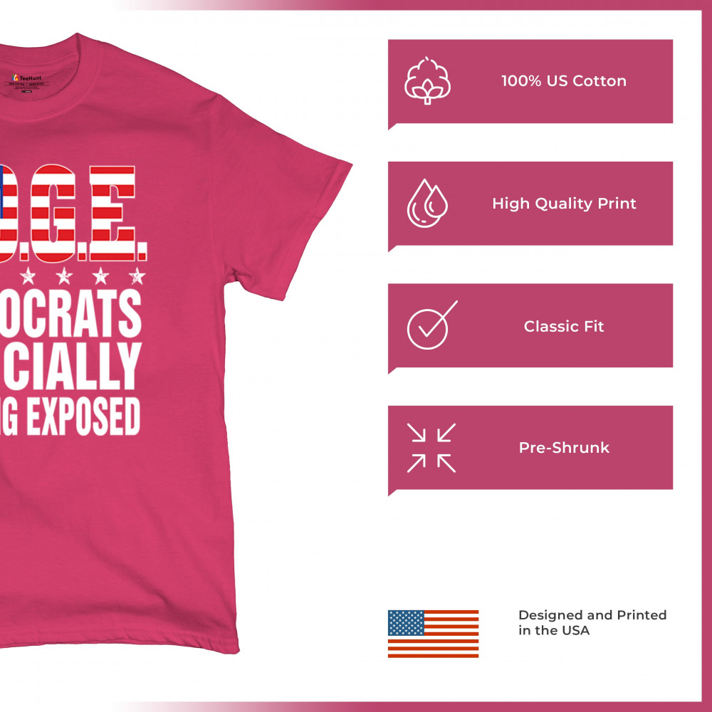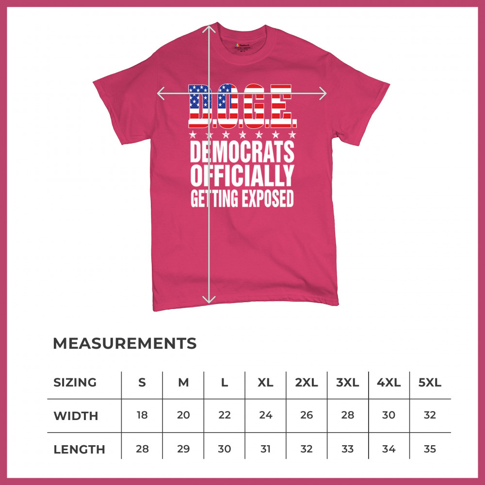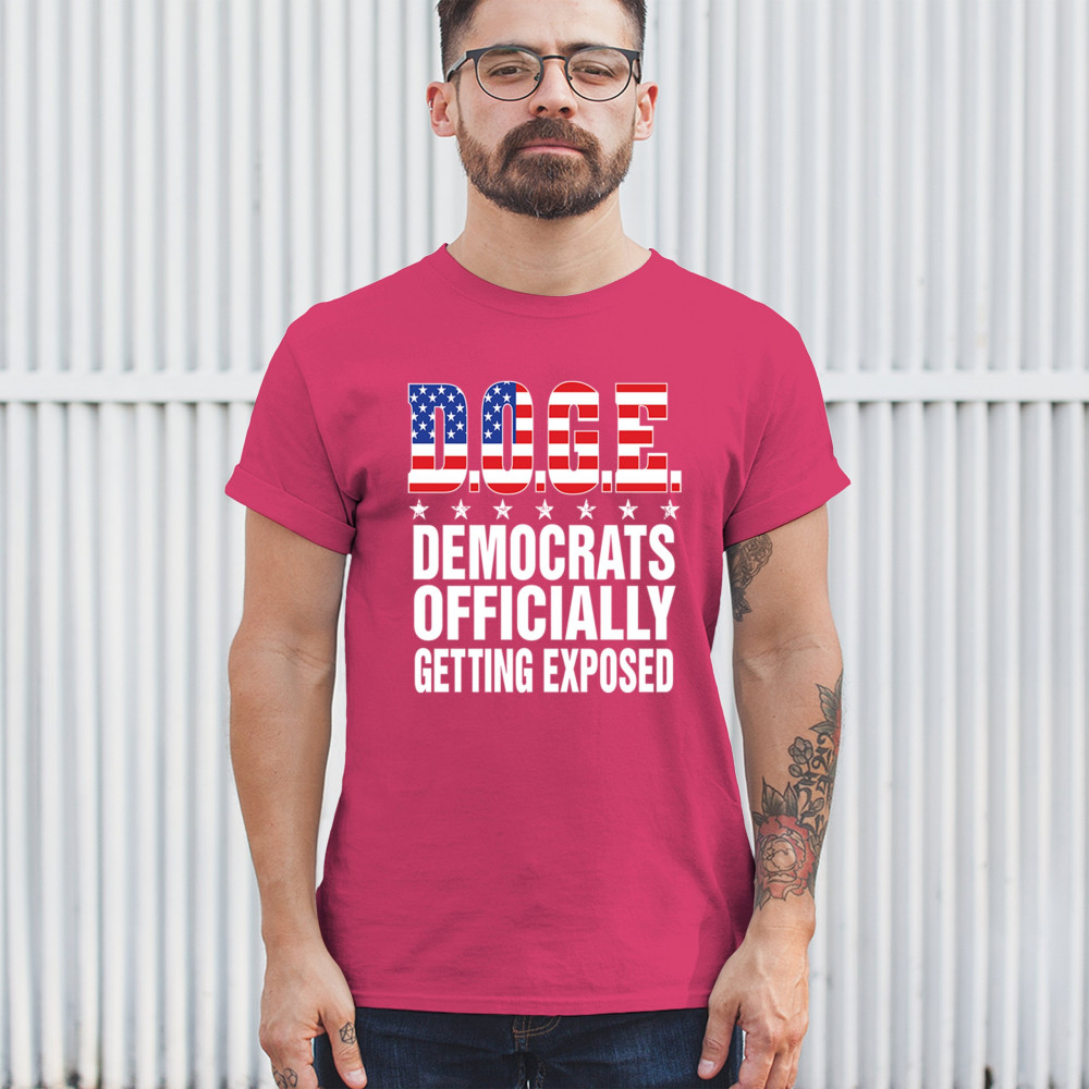 The D.O.G.E. Democrats Officially Getting Exposed design features bold text packed with patriotic flair and political edge. Stars-and-stripes fill the acronym while the clean layout delivers a direct anti-liberal message. Ideal for conservatives, libertarians, and free-speech defenders at rallies, campaign events, or daily wear.