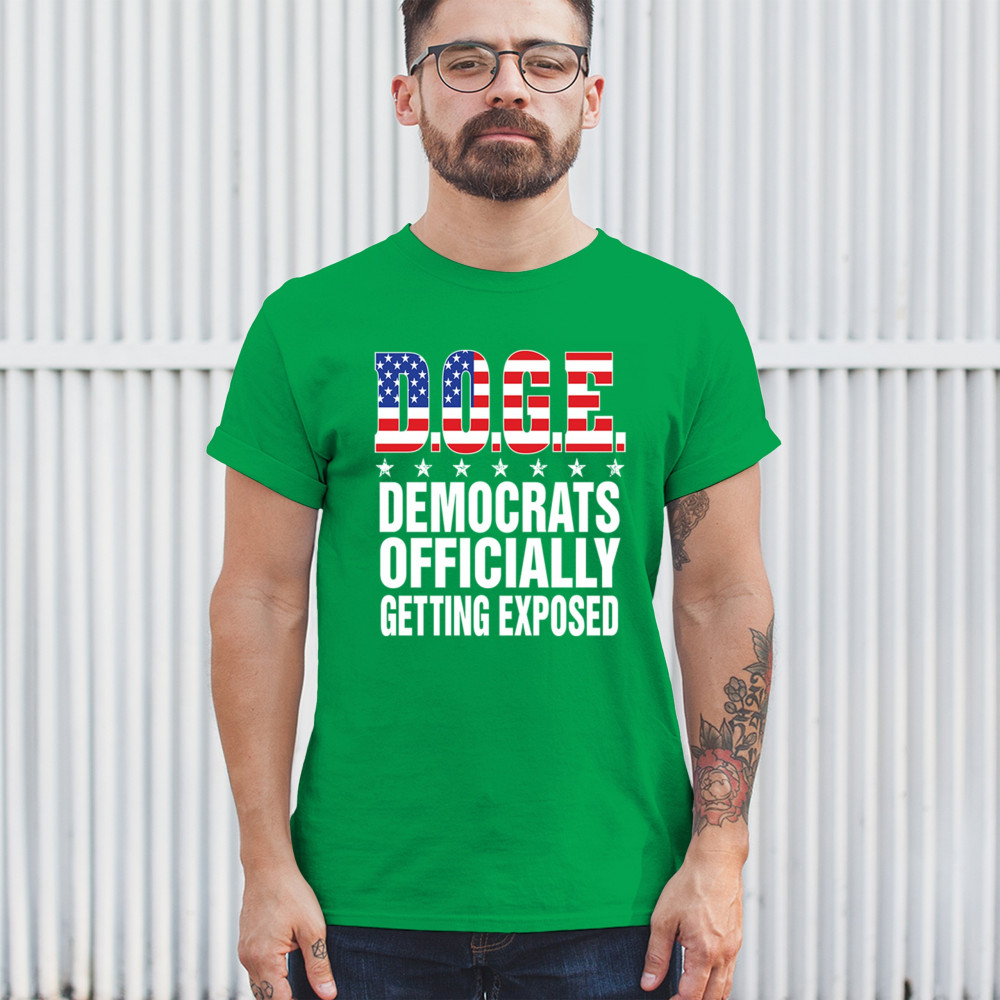 The D.O.G.E. Democrats Officially Getting Exposed design features bold text packed with patriotic flair and political edge. Stars-and-stripes fill the acronym while the clean layout delivers a direct anti-liberal message. Ideal for conservatives, libertarians, and free-speech defenders at rallies, campaign events, or daily wear.
