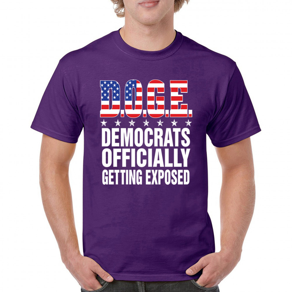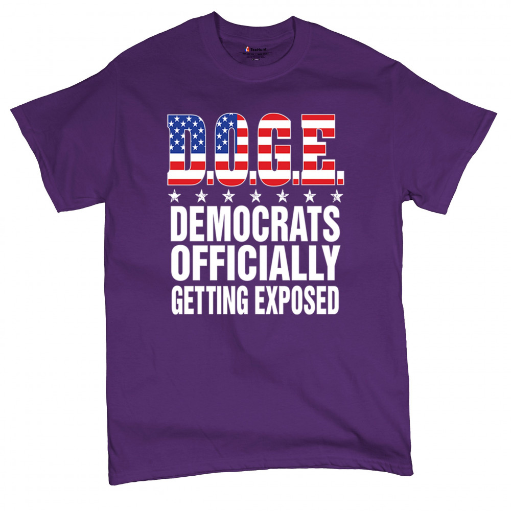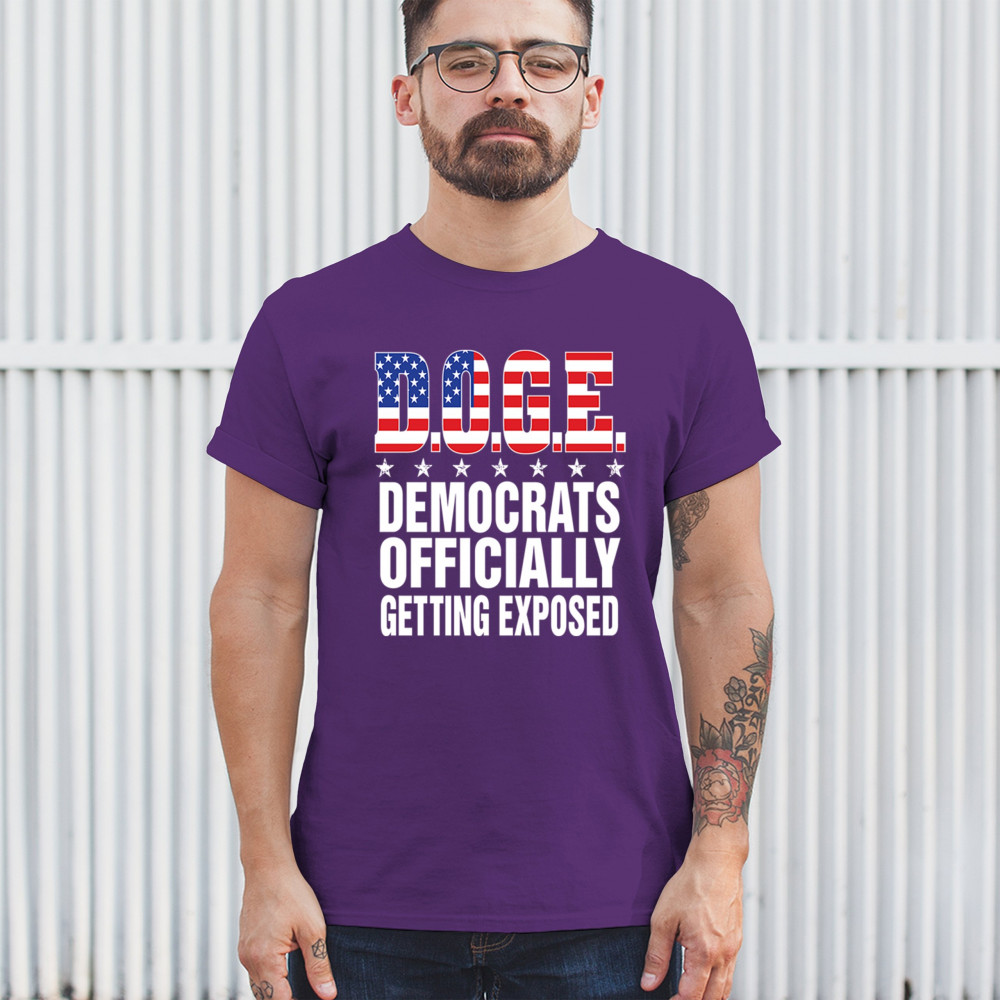 The D.O.G.E. Democrats Officially Getting Exposed design features bold text packed with patriotic flair and political edge. Stars-and-stripes fill the acronym while the clean layout delivers a direct anti-liberal message. Ideal for conservatives, libertarians, and free-speech defenders at rallies, campaign events, or daily wear.
