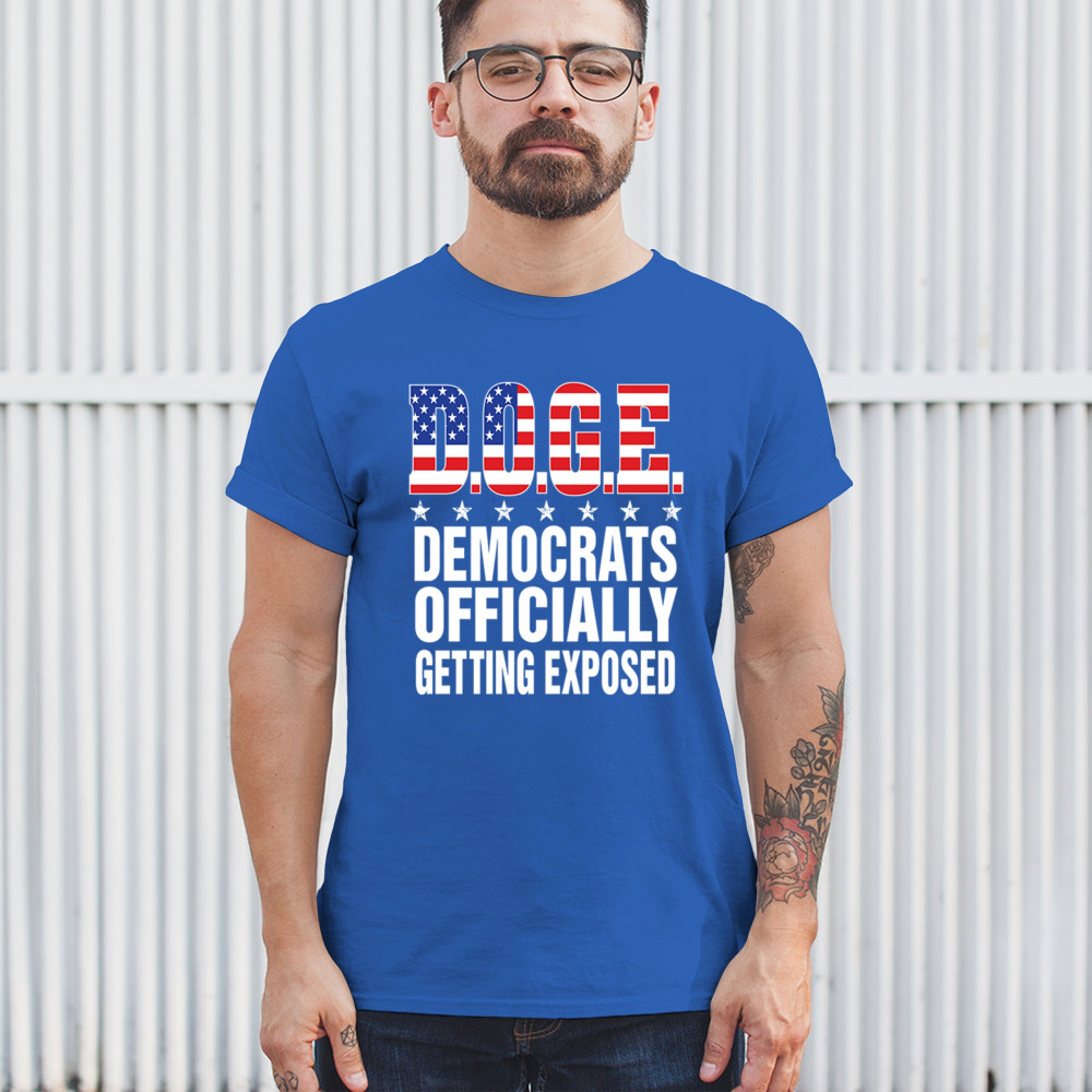 The D.O.G.E. Democrats Officially Getting Exposed design features bold text packed with patriotic flair and political edge. Stars-and-stripes fill the acronym while the clean layout delivers a direct anti-liberal message. Ideal for conservatives, libertarians, and free-speech defenders at rallies, campaign events, or daily wear.
