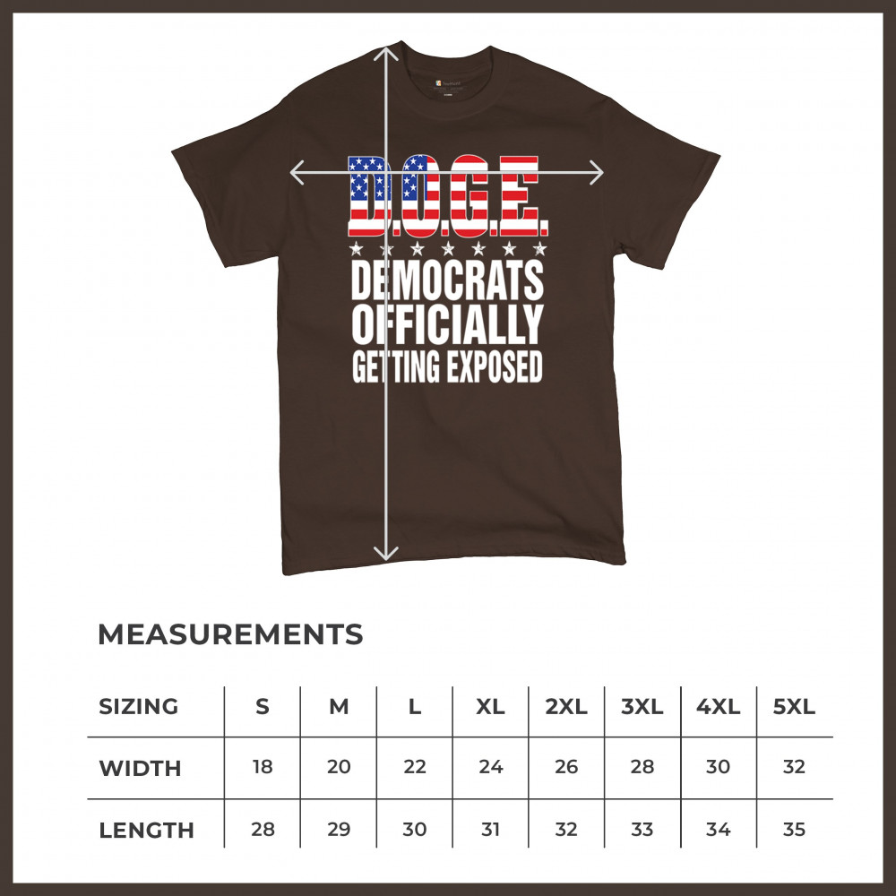 The D.O.G.E. Democrats Officially Getting Exposed design features bold text packed with patriotic flair and political edge. Stars-and-stripes fill the acronym while the clean layout delivers a direct anti-liberal message. Ideal for conservatives, libertarians, and free-speech defenders at rallies, campaign events, or daily wear.