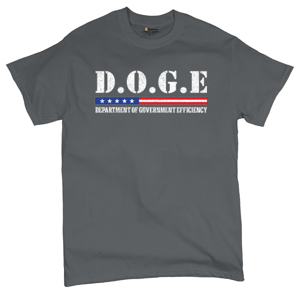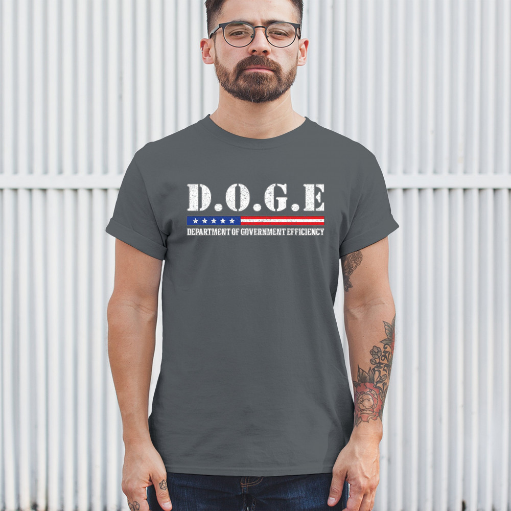 The D.O.G.E. – Department of Government Efficiency design brings gritty patriotism and satire together in a bold statement. With distressed typography, red, white, and blue stars and stripes, and a message that resonates with liberty lovers, it's ideal for conservatives, libertarians, and reform advocates at political events, rallies, or everyday wear.