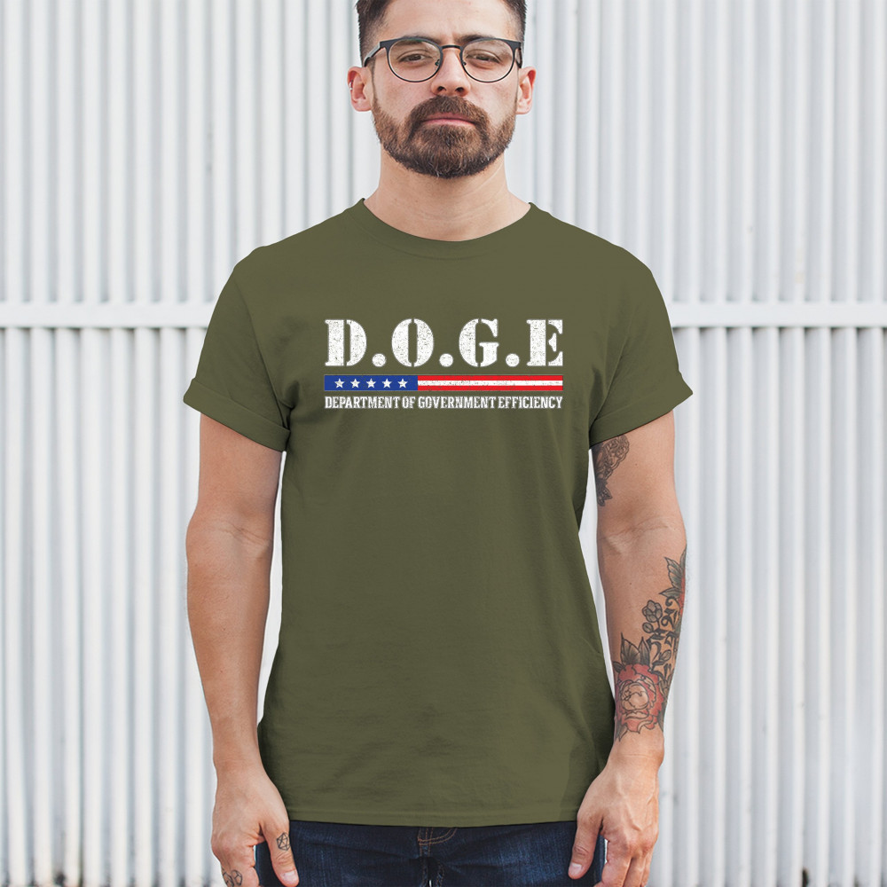 The D.O.G.E. – Department of Government Efficiency design brings gritty patriotism and satire together in a bold statement. With distressed typography, red, white, and blue stars and stripes, and a message that resonates with liberty lovers, it's ideal for conservatives, libertarians, and reform advocates at political events, rallies, or everyday wear.