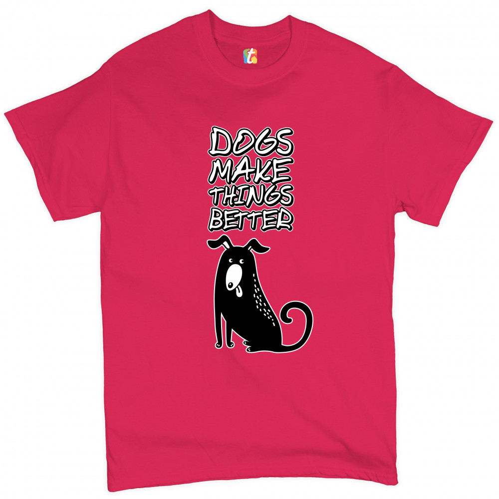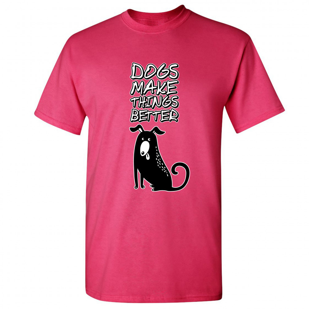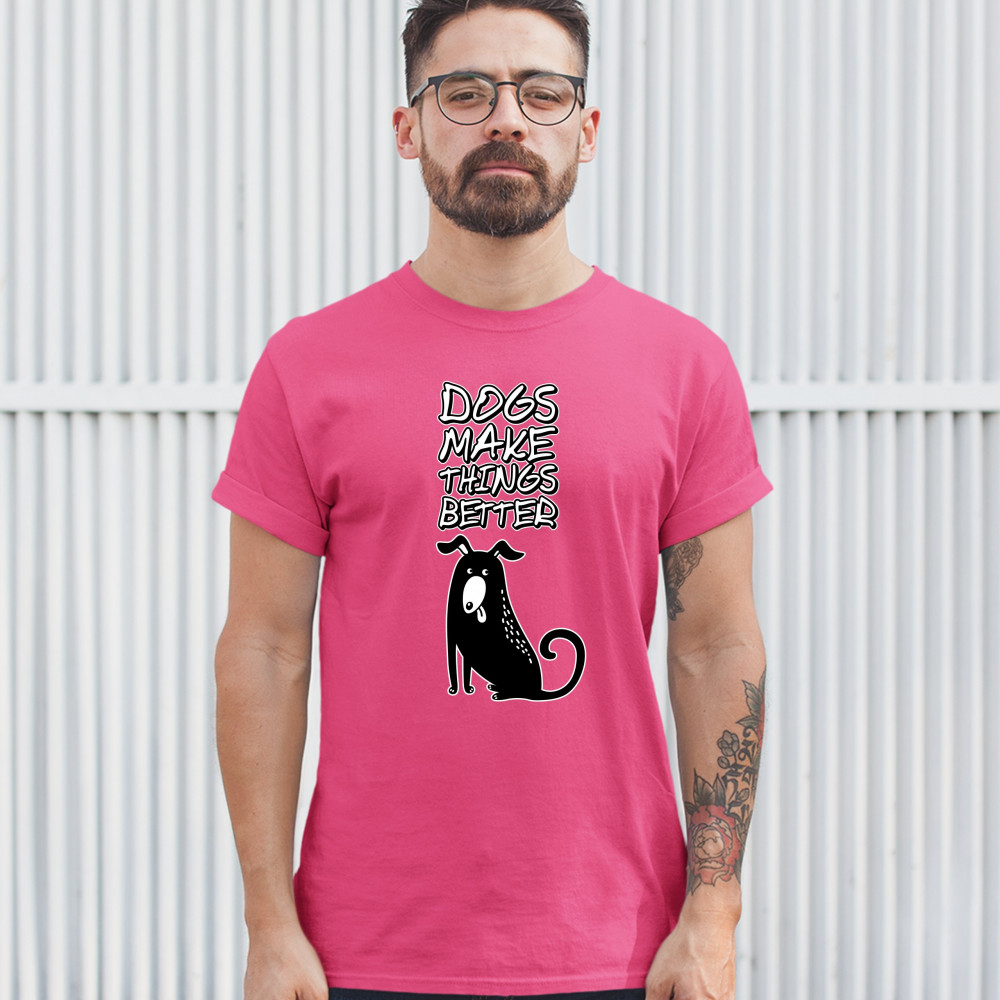 DOGS MAKE THINGS BETTER t-shirt animal pet owner i love my dog men's tee hot pink