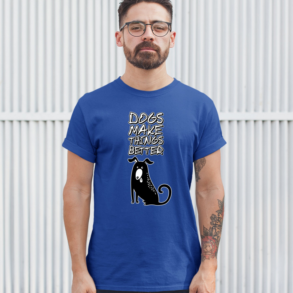 DOGS MAKE THINGS BETTER t-shirt animal pet owner i love my dog men's tee royal blue