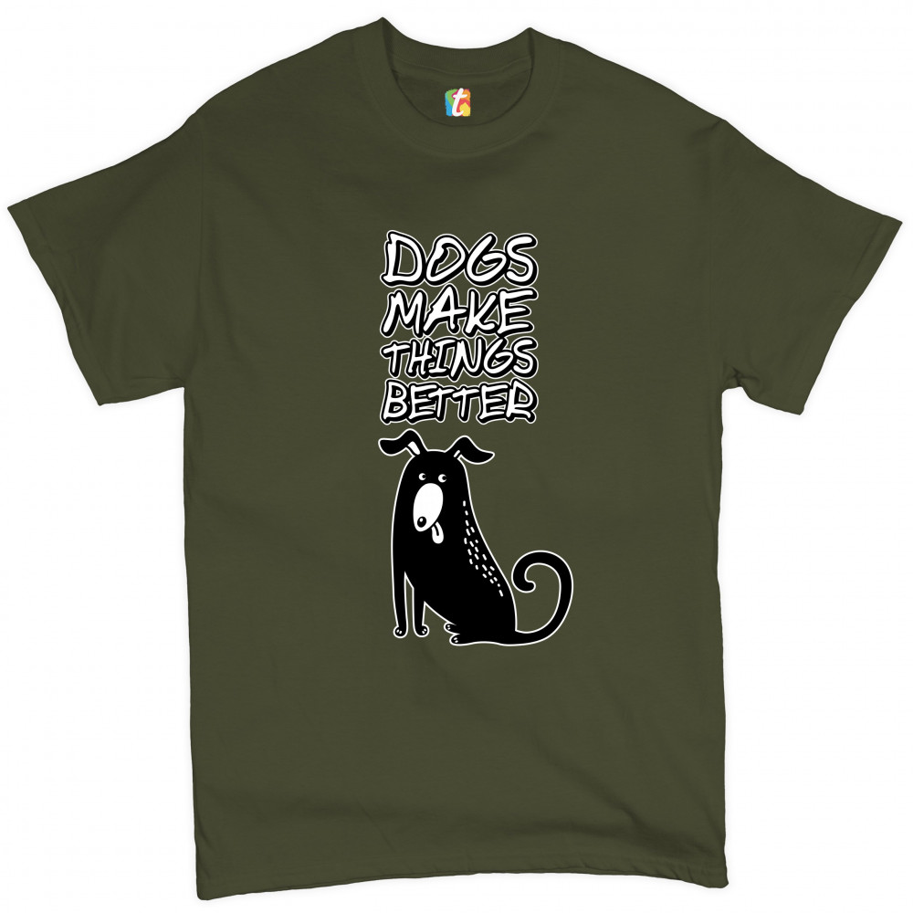 DOGS MAKE THINGS BETTER t-shirt animal pet owner i love my dog men's tee military green