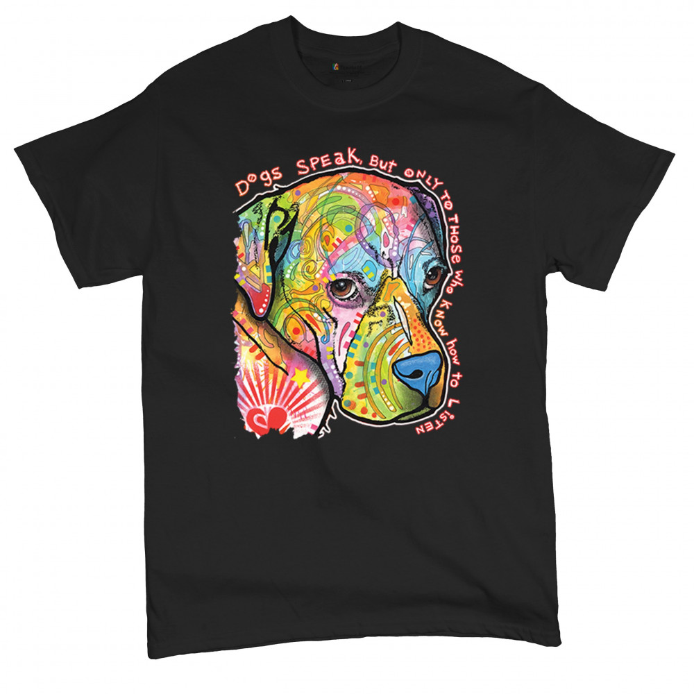 DOGS SPEAK TO THOSE WHO LISTEN t-shirt dean russo neon pet puppy men's tee black