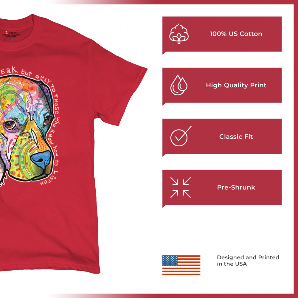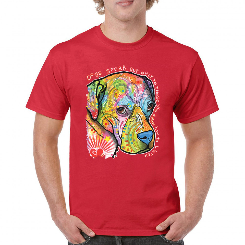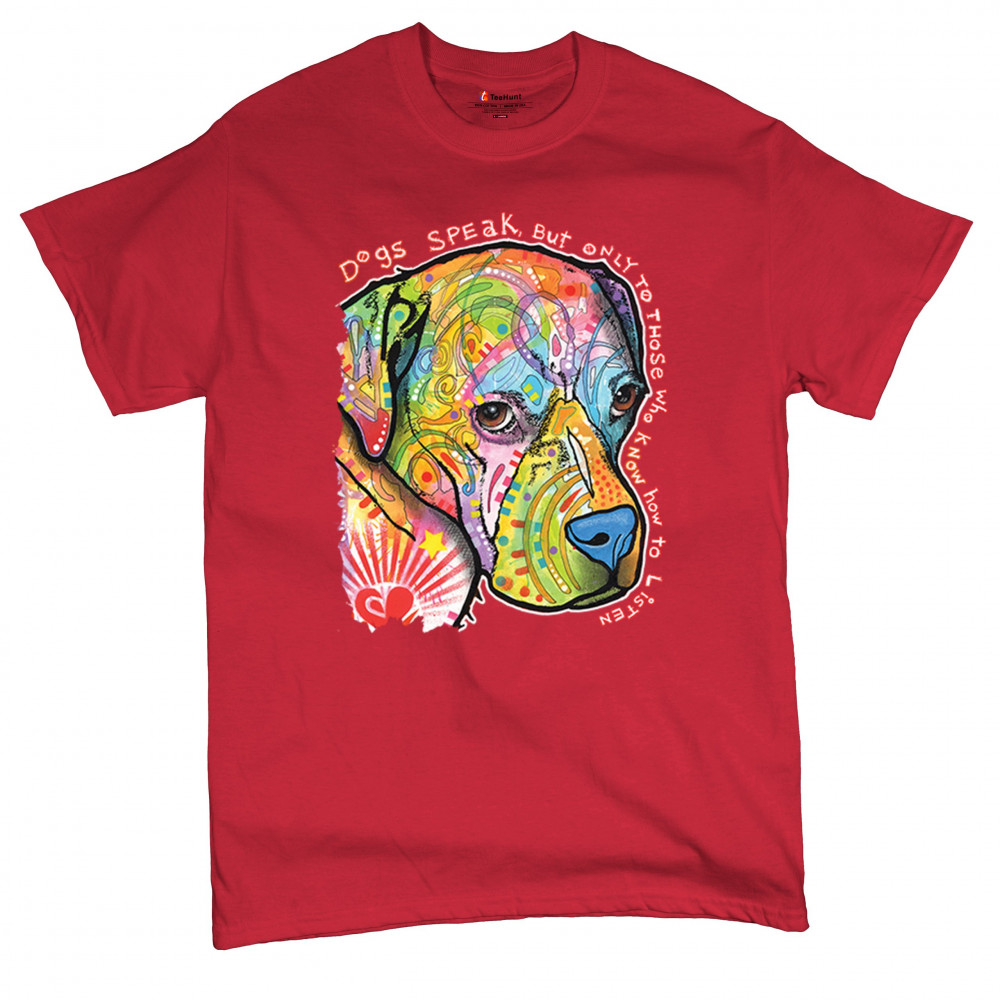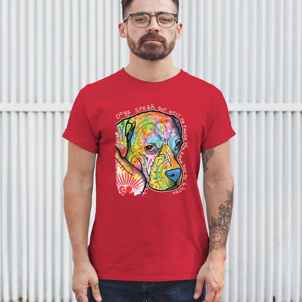 DOGS SPEAK TO THOSE WHO LISTEN t-shirt dean russo neon pet puppy men's tee red