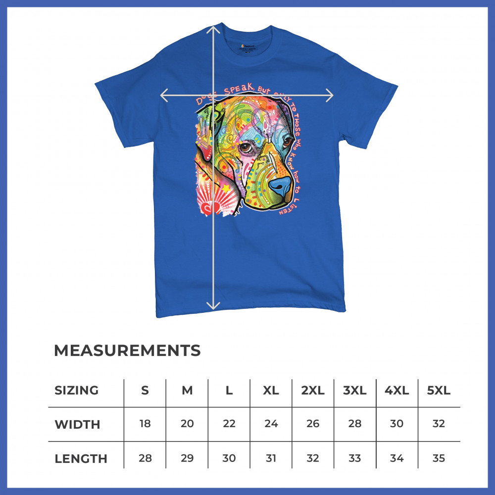 DOGS SPEAK TO THOSE WHO LISTEN t-shirt dean russo neon pet puppy men's tee royal blue